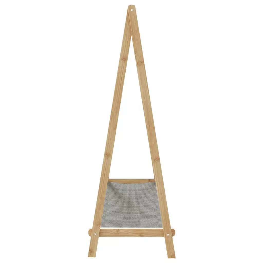 A bambusz ruhatartó természetes megoldást kínál a helyiségek rendszerezésére, a praktikus dizájnt és a robusztus funkcionalitást ötvözve. Stabil és tartós: A bambusz könnyű, vízálló és erős, így kiváló választás különféle alkalmazásokhoz, beleértve a bútorkészítést, az építőipart, a kézműves és a dekorációs tárgyakat.Bőséges tárolóhely: A ruhatár a ruhák rendszerezésére szolgáló akasztórúddal rendelkezik, amely biztosítja, hogy minden könnyen elérhető legyen. A polc ideális a dobozok és cipők tárolására.Összecsukható és helytakarékos: Így tökéletesen megfelel a kis háztartásoknak vagy azoknak, akiknek gyakran kell változtatniuk otthonuk elrendezésén.Sokoldalú használat: A ruhatartó különböző terekhez igazodik, akár a fürdőszobában törölközőtartóként, akár az előszobában kabáttartóként, akár a hálószobában vagy az öltözőben ruhatartóként, táskatartóként és így tovább. Jó tudni:A könnyű hordozhatóság érdekében az oldalsó kampókat az állvány külső keretoszlopaira kell felszerelni.