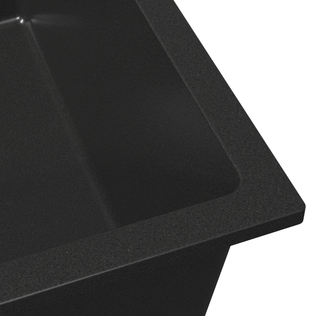 Konyhai Mosogató Átfolyó Nyílással Fekete Gránitból