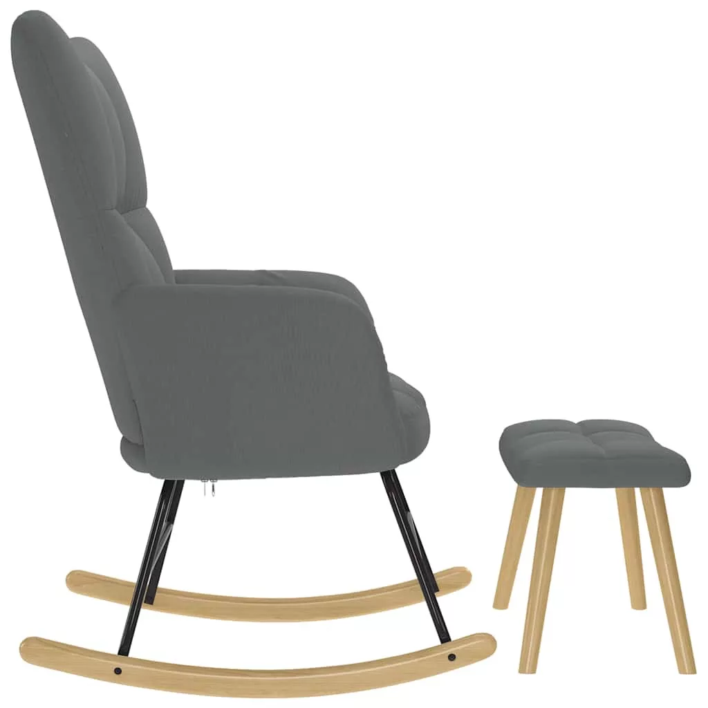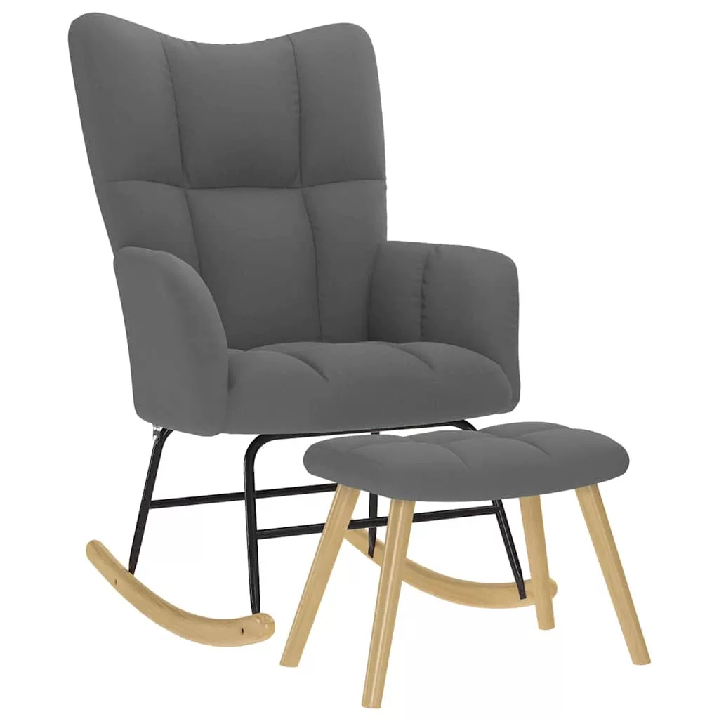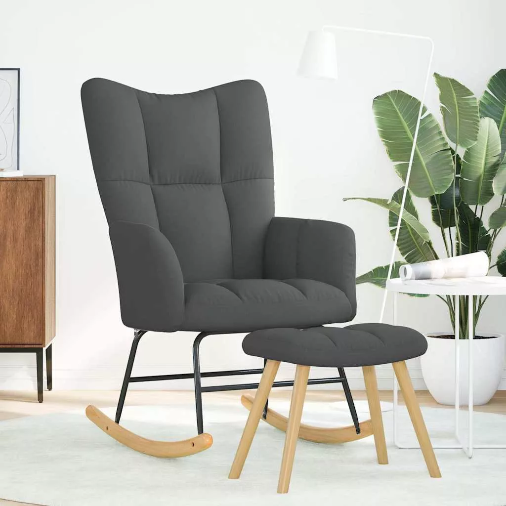 sötétszürke szövet hintaszék lábtartóval