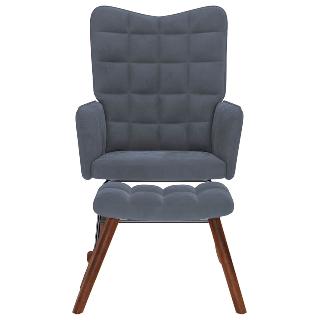 sötétszürke bársony hintaszék lábtartóval
