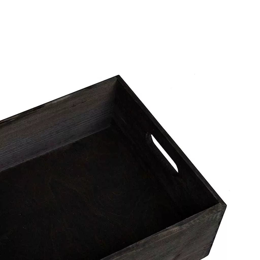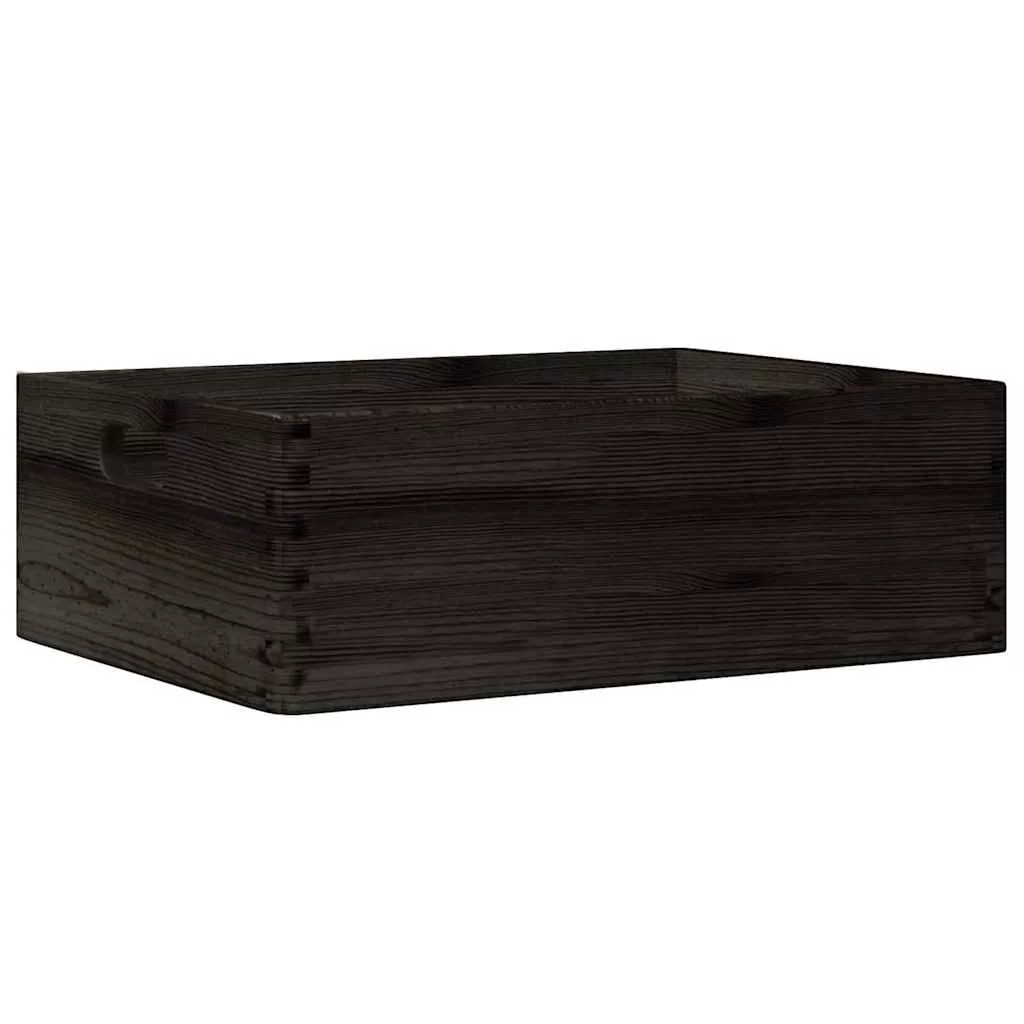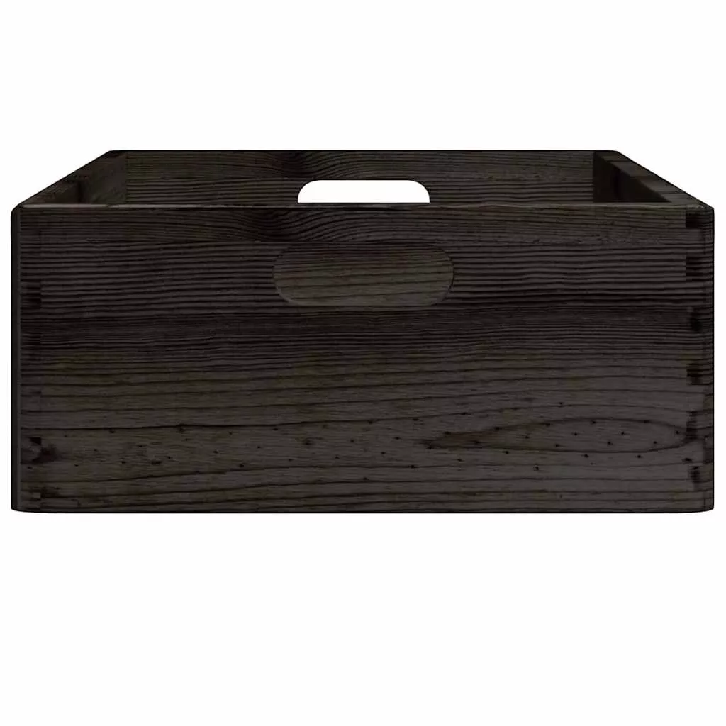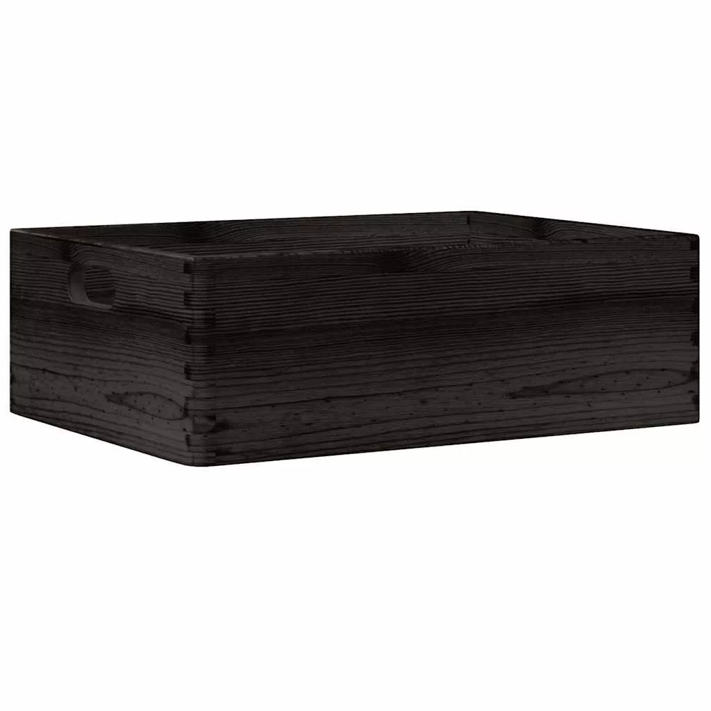 Fa doboz fogantyúkkal fekete 40x30x13 cm tömör fa fenyő