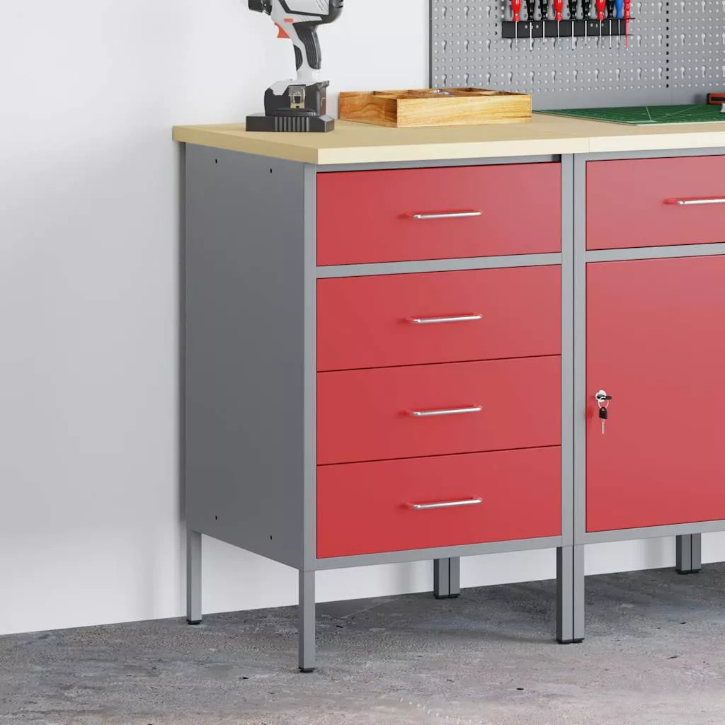 Munkapad Piros és Szürke 50 x 55 x 85 cm Műszaki fa és acél