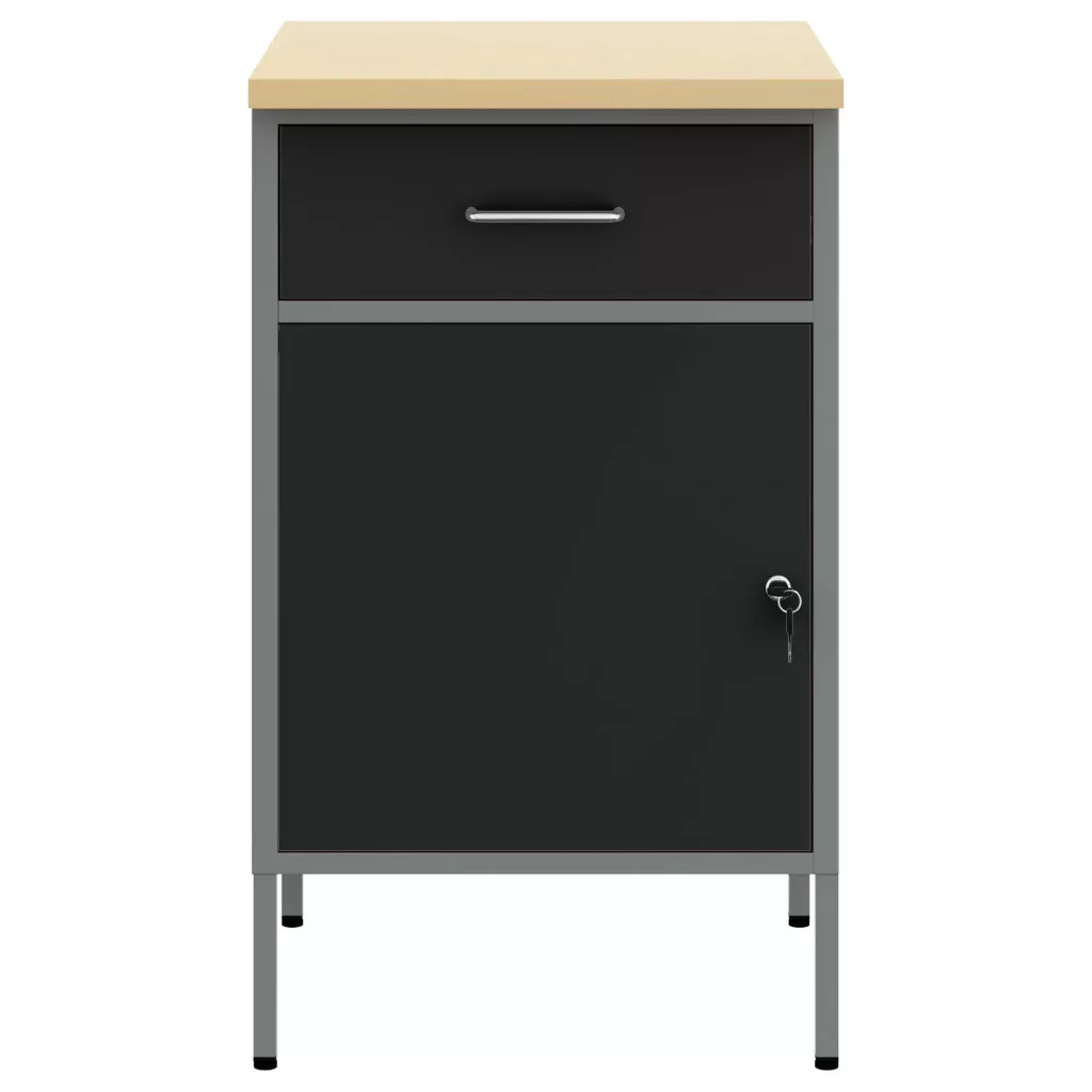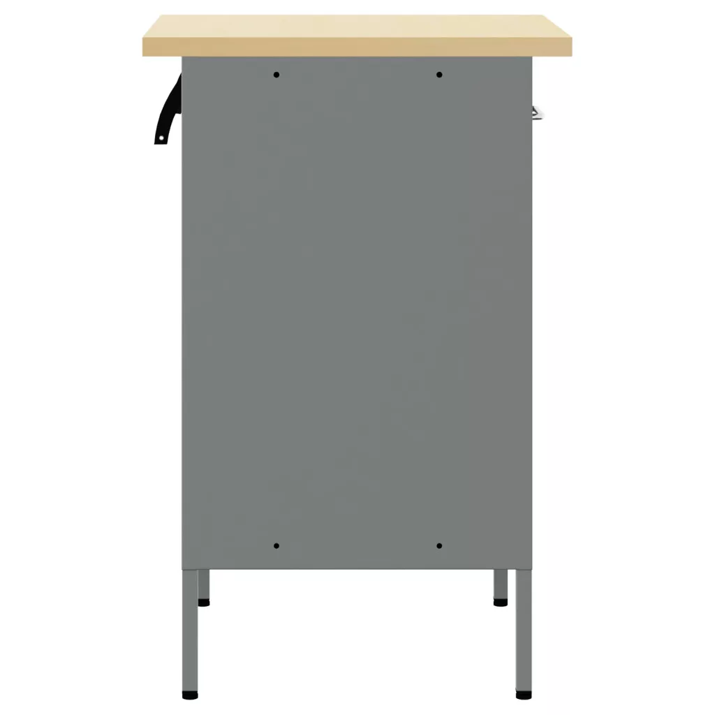 A vidaXL munkaszekrény egy fiókkal és egy ajtóval egy kompakt tárolási megoldás, ami ötvözi a funkciót egy stílusos ipari kinézettel. Remekül jó garázsokba, műhelyekbe vagy irodákba is. Masszív felépítése teljesíti a tárolási igényeid, miközben feldobja a munkatered hangulatát. Kompakt tárolási megoldások: Ez a szekrény nagy fiókkal és zárható ajtós résszel rendelkezik, lehetővé téve az eszközök biztonságos tárolását, miközben kevesebb helyet foglal el. Minden fiók akár 10 kg-ot is elbír, szóval biztonságosan tárolhatod a nehezebb tárgyakat. Biztonságos kialakítás: A munkaszekrény zárható ajtóval rendelkezik, megnyugtatva a szerszámaid és kellékeid biztonságát egy masszív, stílusos elülső mögött. Tartós felépítés: Magas minőségű acélból készült, 25 mm-es szerelt fa tetejével, a szekrény az erősség és a tartós használat érdekében lett megtervezve. Magasságban állítható lábak: Az állítható lábakkal a szekrény stabilan áll egyenetlen padlón, így bármilyen műhelybe, garázsba vagy irodai helyiségbe alkalmas. Elegáns felület: A szekrény matt fekete és szürke felülete, faerezetű teteje, fokozza az ipari megjelenését, miközben jól illeszkedik a különböző stílusokhoz.