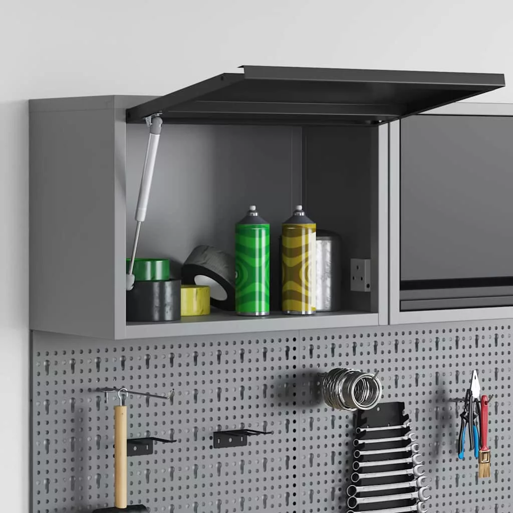 Ez a Modern Acél Szerszám Szekrény egy praktikus megoldás a műhelyed vagy garázsod rendszerezésére. Az ipari stílusú, városi loftok ihlette megjelenése rengeteg helyet biztosít a szerszámaidnak. Robusztus szerkezete az acél és a szerelt fa tökéletes kombinációja, megbízható és stílusos kiegészítést kínál a beltéri munkaterületekhez. Ideális mind a barkácsolóknak, mind a profiknak, a szekrény struktúrált rekeszei és modern dizájnja növelik a hatékonyságot. Szerelt fa és acél: Az acél erejét és a szerelt fa sokoldalúságát ötvözve, ez a szekrény ellenáll a viszontagságoknak, megbízható, hosszú távú használatot biztosít. Az anyagok tartósságra és stabilitásra lettek kiválasztva, így egy szilárd szerkezetet alkotnak, ami tökéletesen illeszkedik az ipari és kortárs enteriőrökbe. Struktúrált tároló rekeszek: A sokféle rekesz, beleértve az állítható fiókokat és polcokat, optimális rendszerezést biztosít, így a szerszámaid mindig kéznél lesznek. A dizájn lehetővé teszi a különböző szerszámok rendezett tárolását, így még hatékonyabbá teszi a munkádat. Beltéri használatra készült: Kifejezetten beltéri környezetekhez, például műhelyekhez és garázsokhoz lett tervezve, a szekrény folyamatos tárolási megoldást nyújt, anélkül, hogy figyelembe kellene venni kültéri faktorokat. Ez a fókusz biztosítja, hogy minden funkció összhangban legyen a beltéri rendszerezési igényekkel. Összeszerelési specifikációk: Az egyszerű összeszereléshez könnyen követhető útmutatók tartoznak. Csak egy csavarhúzóra és két emberre van szükség, hogy gyorsan egy masszív, megbízható tárolóegységet szereljetek össze. Alacsony karbantartás: A megjelenés könnyedén karbantartható, csak egy nedves ruhával kell letörölni. Ez a rutin segít tisztán és jól tartani a szekrényt, minimalizálva az erőfeszítéseket, miközben megőrzi ipari varázsát.
