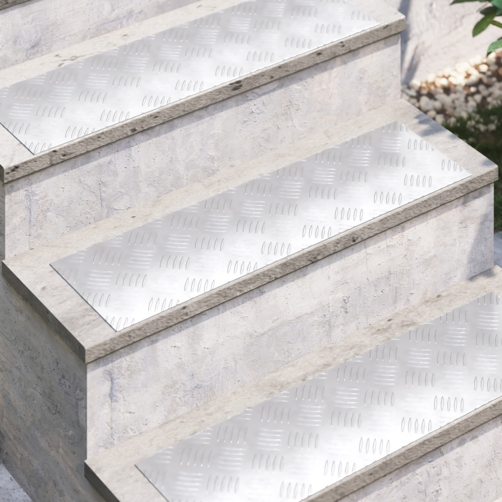 Ez az alumínium lépcsőfok szett a biztonság és a stílus növelésére lett kitalálva a bejáratodban vagy előszobádban. A letisztult, modern kinézet mellett ezek a helyes négyszögletes fokok nagyszerű tapadást adnak, miközben jól illenek bármi belső és külső stílushoz. A csúszásmentes alap segít elkerülni a baleseteket, biztonságérzetet adva a lépcsőkön. Strapabíró alumíniumból készült, ezek a fokok évekig bírni fogják. Ezek a sokoldalú lépcsőfokok jók otthonokba, üzletekbe vagy nyilvános helyekre, ahol fokozzák a biztonságot. A sakktábla mintázat jól néz ki és hasznos funkcióval is bír. Mindegyik fok 70 x 20 cm, így illeszkedik a különféle lépcsőméretekhez.