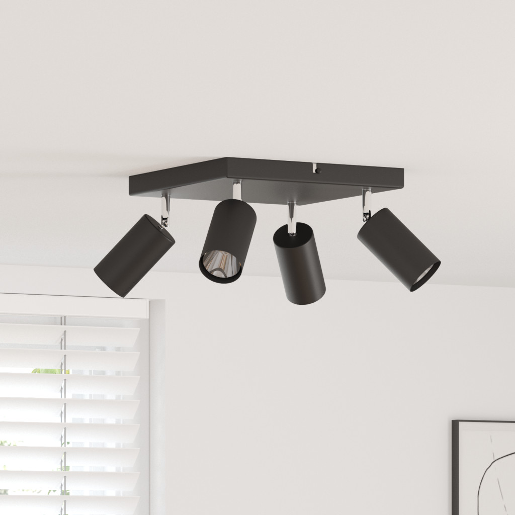 4 irányú állítható fekete GU10 mennyezeti spotlámpa
