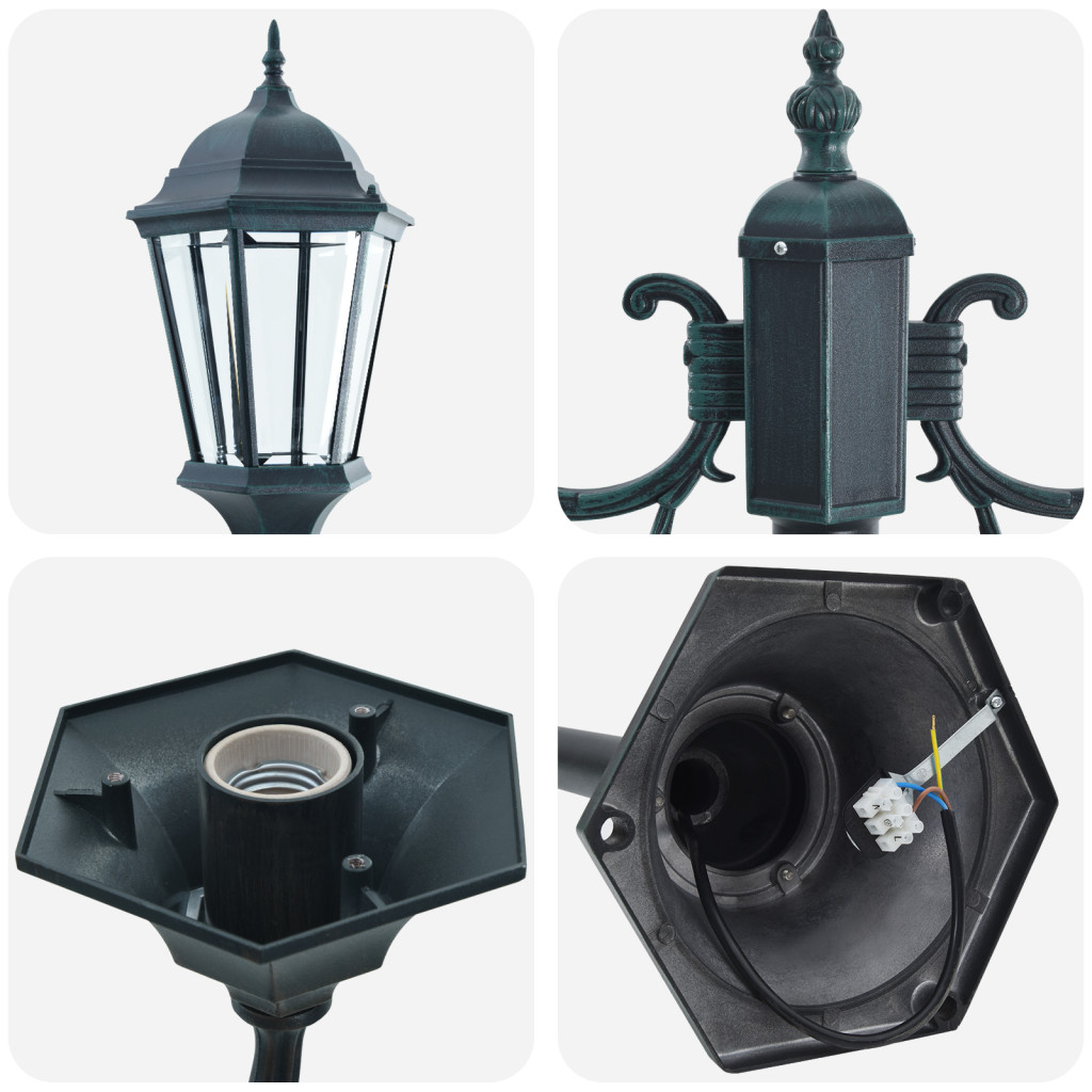 Kerti lámpa oszlop 2-lámpás E27 Zöld 220 cm Alumínium