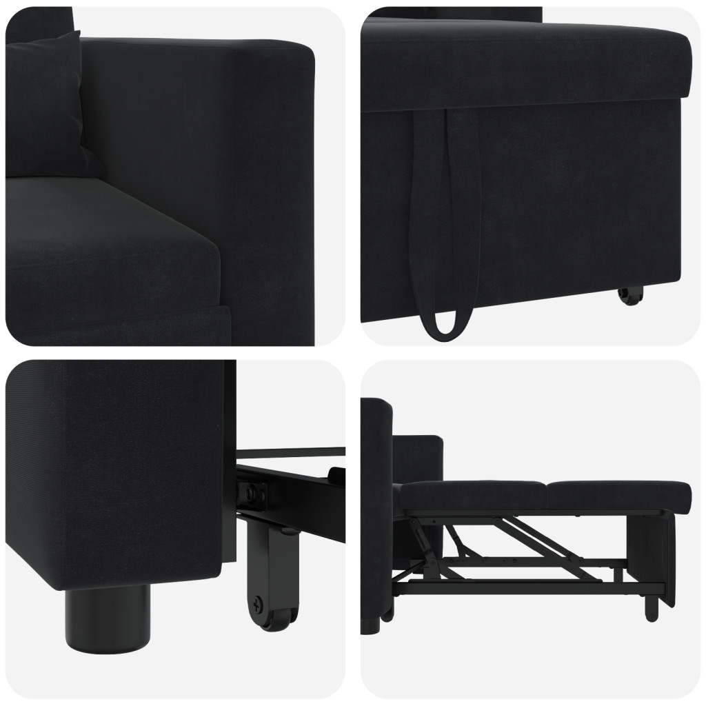 3 az 1-ben Egyszemélyes Kanapéágy Átalakítható Fekete Bársony