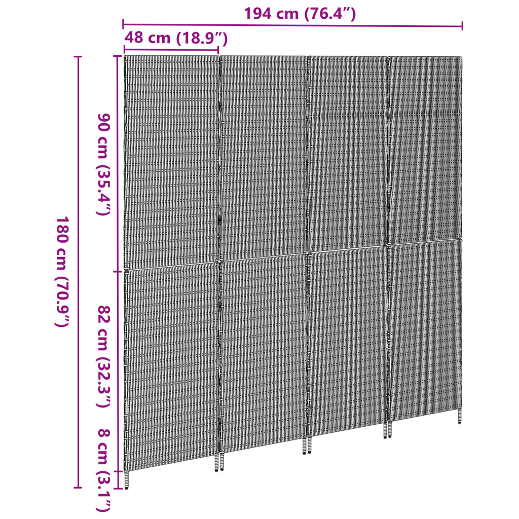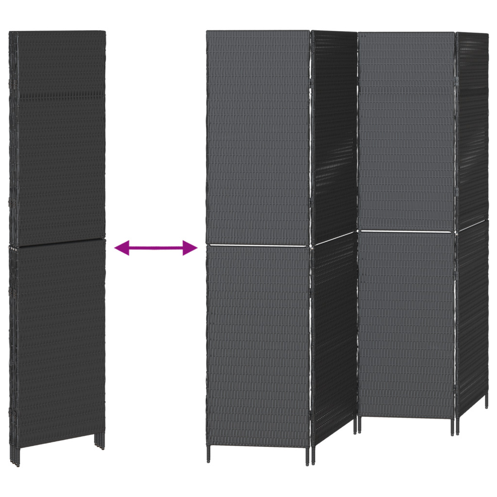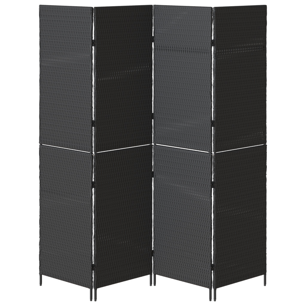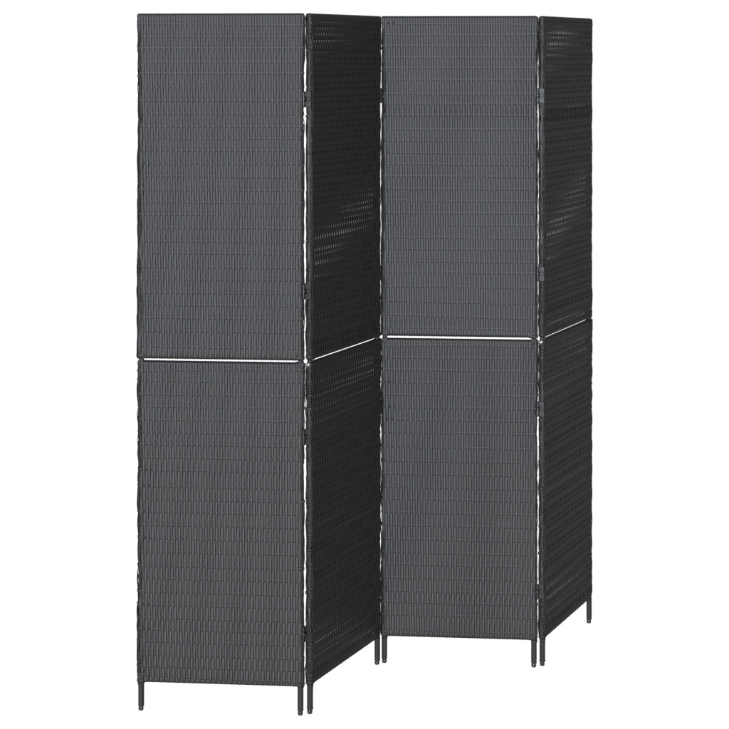 szobai elválasztó 4 paneles hajtható fekete 195x180 cm poli rattan