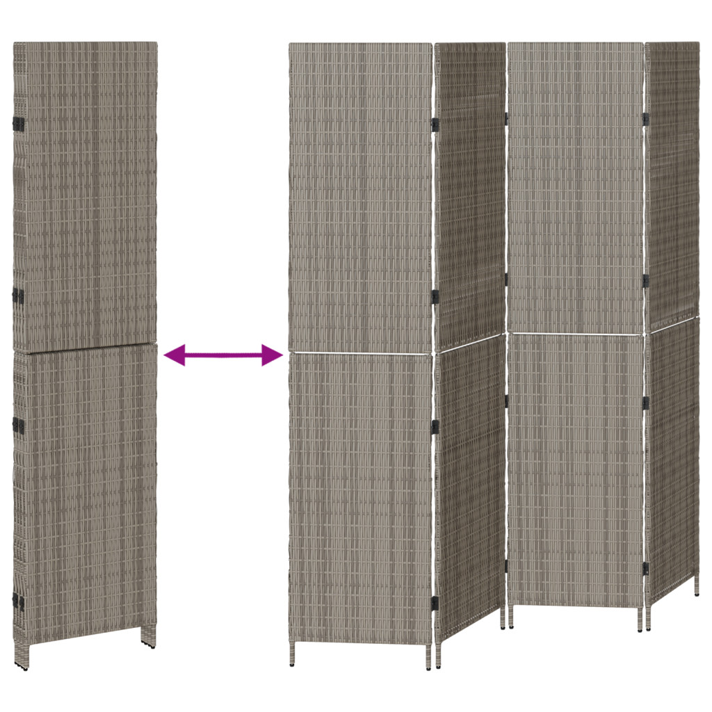 4 Paneles Összecsukható Szobaelválasztó Szürke 195x180 cm Poli Rattan