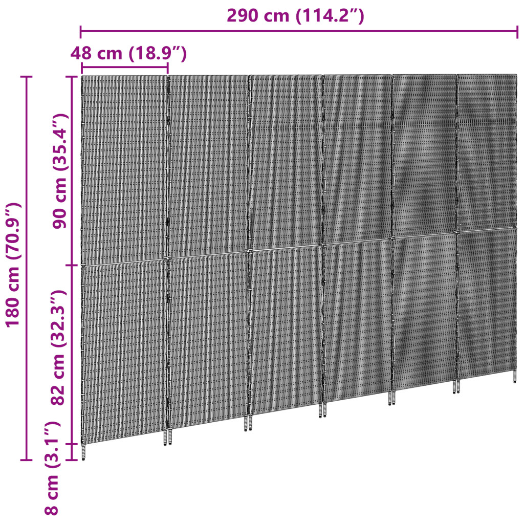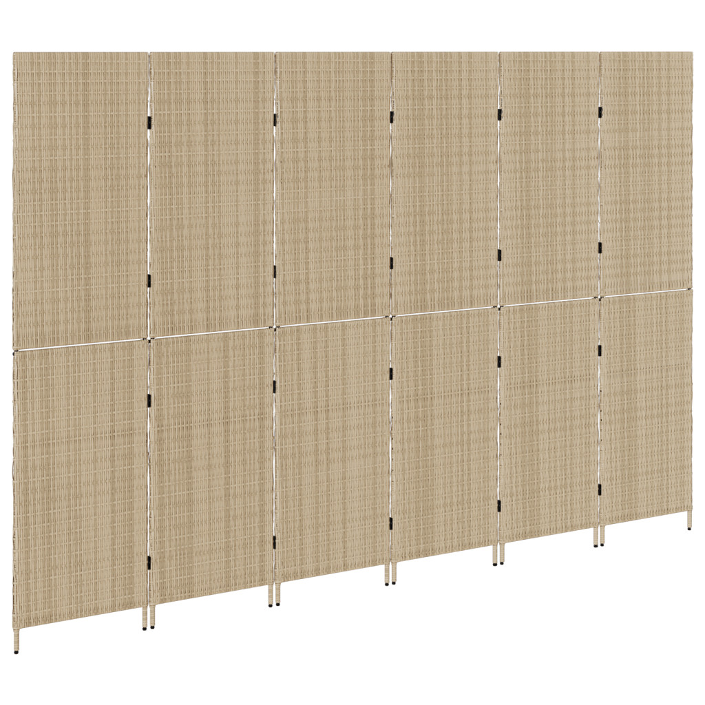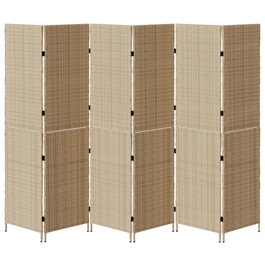 6 paneles térelválasztó, hajtható, bézs, 294x180 cm, poly rattan
