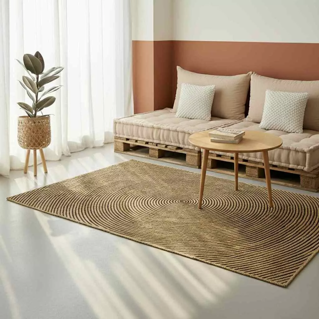 Ez az elegáns szőnyeg természetes juta rostokból készült, ami igazán tartós kiegészítője az életterednek. Modern dizájnja az egyszerűség és praktikum jegyében készült, így szuper választás kortárs belső terekhez. Kerek formája miatt jól illik szinte bármelyik stílushoz, és kézműves jellege egyedi vonzást biztosít. Kifejezetten beltéri használatra készült, komfortosabbá és stílusosabbá teszi a nappalit, barátságos, vonzó légkört teremtve. Magas minőségű juta: A szőnyeg prémium jutaszálakból készül, ismertek a tartósságukról és jótékony hatásukról. Természetes anyaga meleg és földes színeket ad bármilyen térnek, és bírja a mindennapos használatot. Puha textúrája kényelmes a lábnak, így ideális gyerekeknek és felnőtteknek egyaránt, javítva a lakókörnyezetet. Modern stílus: Kortárs dizájnja tiszta vonalakkal és elegáns megjelenéssel idézi meg a modern minimalizmust. Diszkrét megoldásai miatt sokoldalú, jól illeszkedik a különböző belső tervekhez, akár egy menő városi loftban, akár egy családi fészekben is. Könnyű karbantartás: Könnyen tisztítható, mosógépben mosható, így nagyon praktikus a karbantartása. Az egyszerű mosási folyamat miatt a felhasználók könnyedén frissen tarthatják a szőnyeget, bonyolult takarítás nélkül, időt és energiát spórolva, miközben minden mosáskor szuperül néz ki. Nappali kényelem: A szőnyeg jól mutat a nappaliban, melegséget és kényelmet adva, ami ösztönzi a családi összejöveteleket és pihenéseket. A jelentős padlófelületet lefedve fontos része az összes nyitott nappali térnek, növelve ezzel az esztétikai és gyakorlati értékét. Kézműves részletek: Minden szőnyeg egyedi, kézzel készült, ami a mesterségbeli tudás és elkötelezettség jele. Ez a gondos munka különböző egyedi vonásokat ad minden darabnak, biztosítva, hogy azok sose legyenek egyformák. Az autentikus kifejezés hozzáteszi a személyes vonást az otthonhoz, vonzóvá téve a kézműves, egyedi dizájnt kedvelők számára.