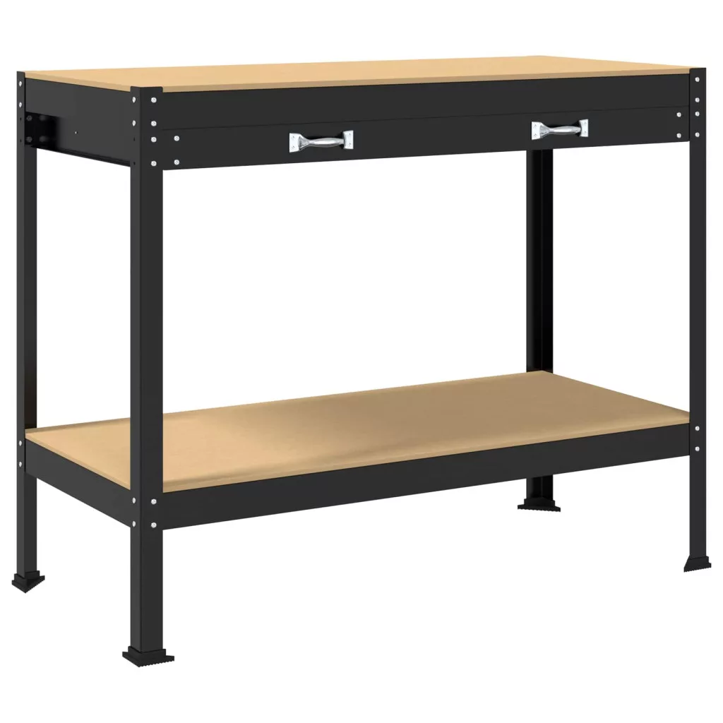 Munkaasztalok fiókkal polcokkal Fekete 81 x 41 x 145 cm Faanyag