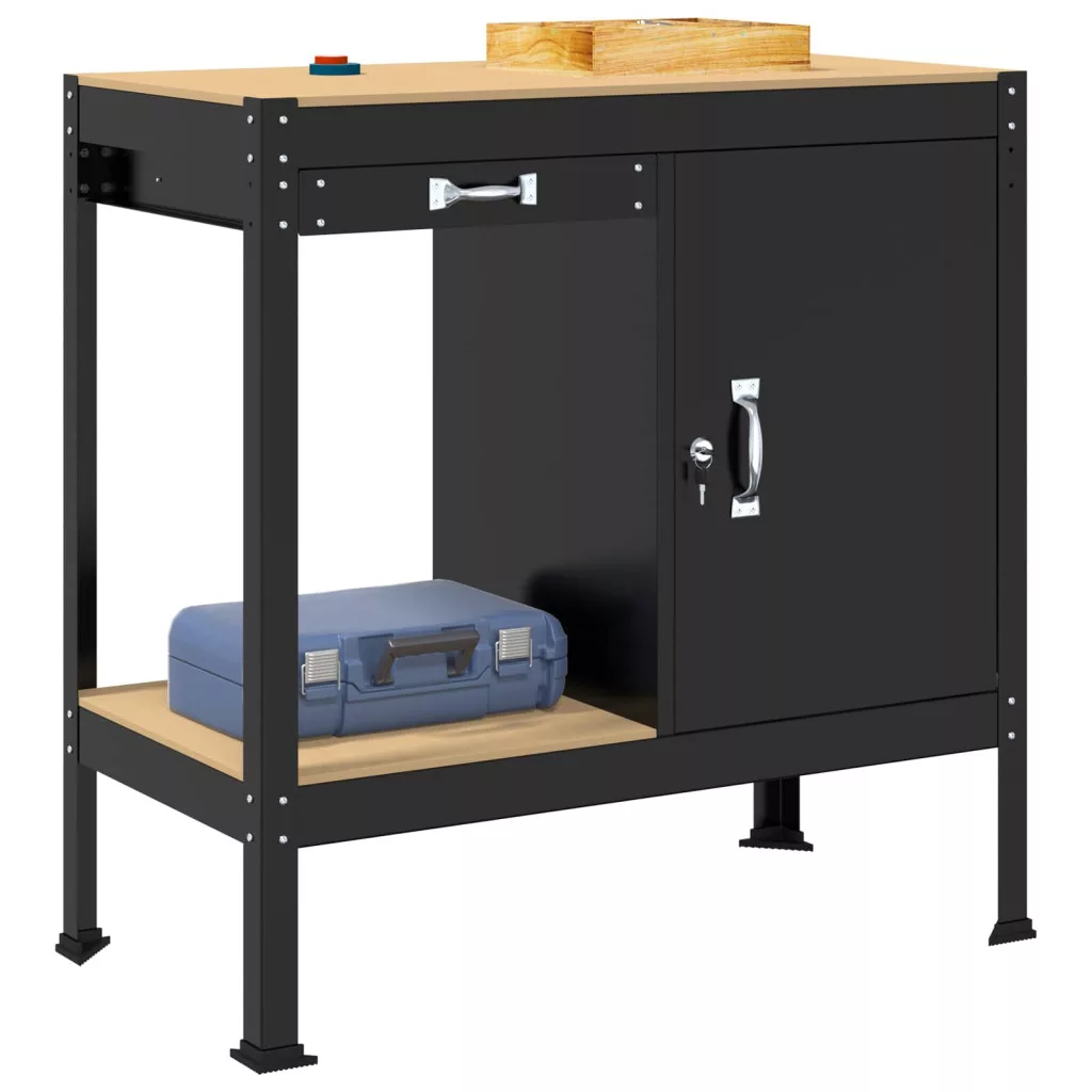 Munkaasztalok fiókkal polcokkal Fekete 81 x 41 x 145 cm Faanyag