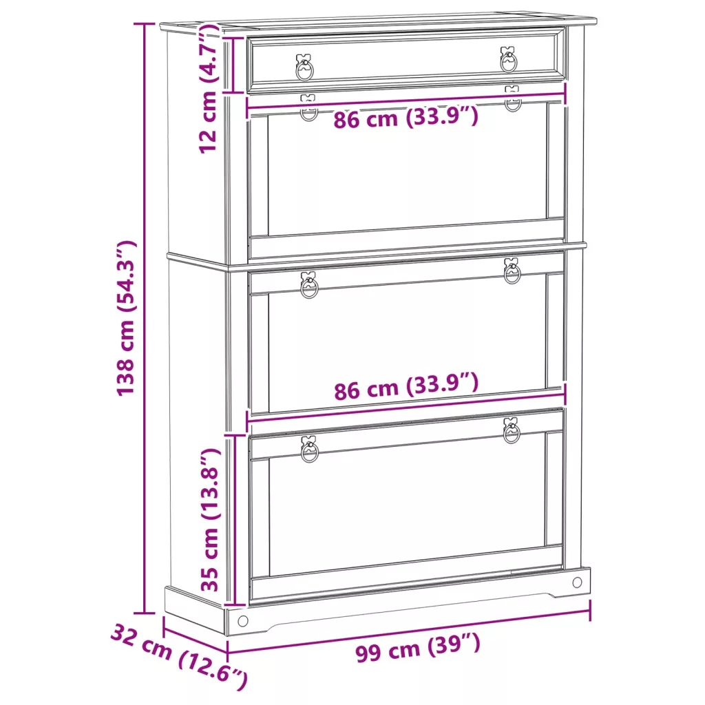 Cipőszekrény Corona Fehér 99 x 32 x 138 cm Tömör fenyőfa