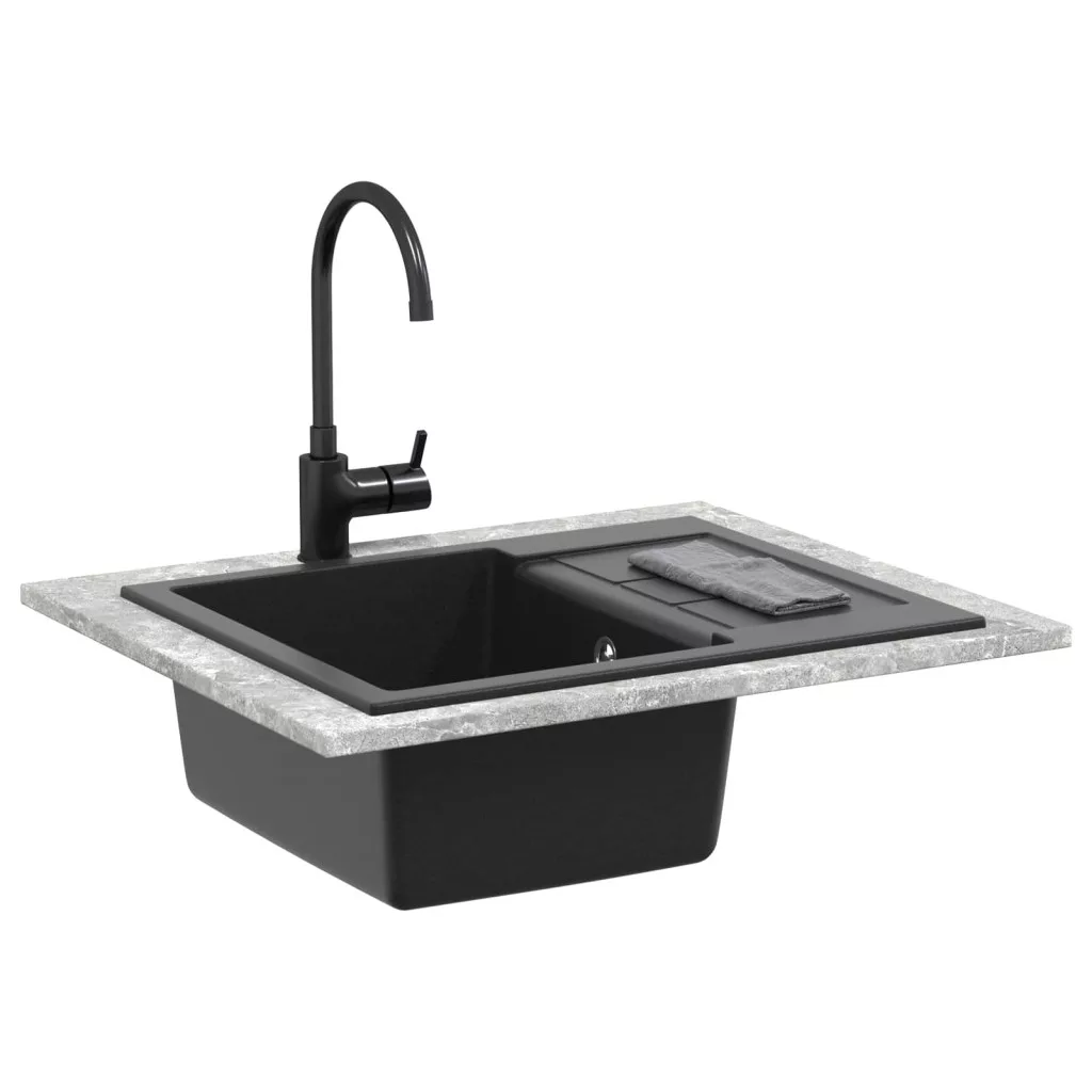 Mosogató Fekete 620 x 500 mm 80% Kvarc és 20% Gyanta