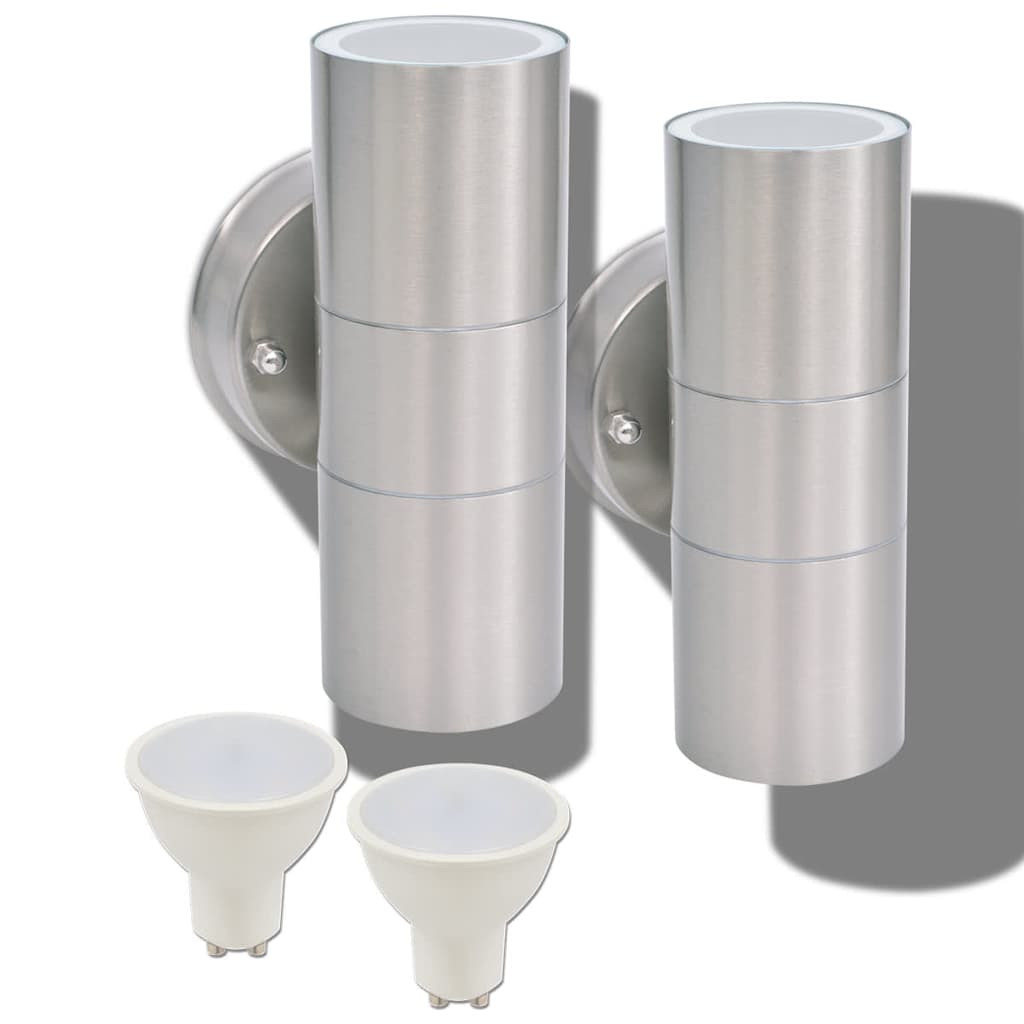 2db fel/lefelé világító rozsdamentes acél kültéri LED falilámpa