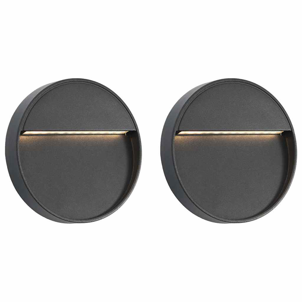 2 db fekete kerek kültéri LED falilámpa 3 W