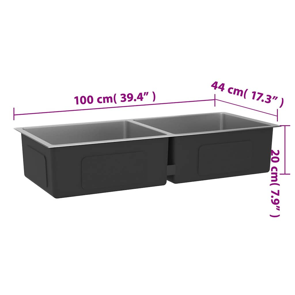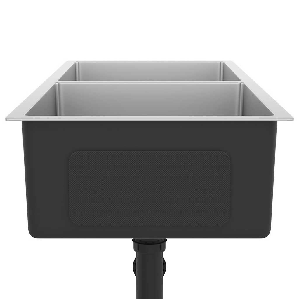 Élvezze letisztult, modern kialakítású mosogatónk minden előnyét! A selymesen sima szaténbevonattal ellátott két tálca stílust és kifinomultságot sugároz, így bármilyen konyhába illeni fog. Ez a mosogató a funkcionalitást és a dizájnt ötvözi. Kiváló minőségű rozsdamentes acélból készült kézzel, mely párásodásgátló festékkel lett felülkezelve, így penészálló, ólommentes és korrózióálló. A zajcsökkentő alátéteknek köszönhetően hangszigetelt. Ráadásul az egyedi, X alakú csatornaszerkezet gyors vízáramlást tesz lehetővé, aminek köszönhetően nem áll meg a víz a mosogató alján. A mosogató rejtve vagy süllyesztve is beszerelhető, ahogy a helyzet megkívánja. A gyermekeket felügyelni kell, hogy ne játsszanak a készülékkel. Tartsa távol a gyerekeket az összeszerelési területtől. Figyelem: Használat előtt figyelmesen olvassa el az utasításokat, és őrizze meg további hivatkozás céljából.
