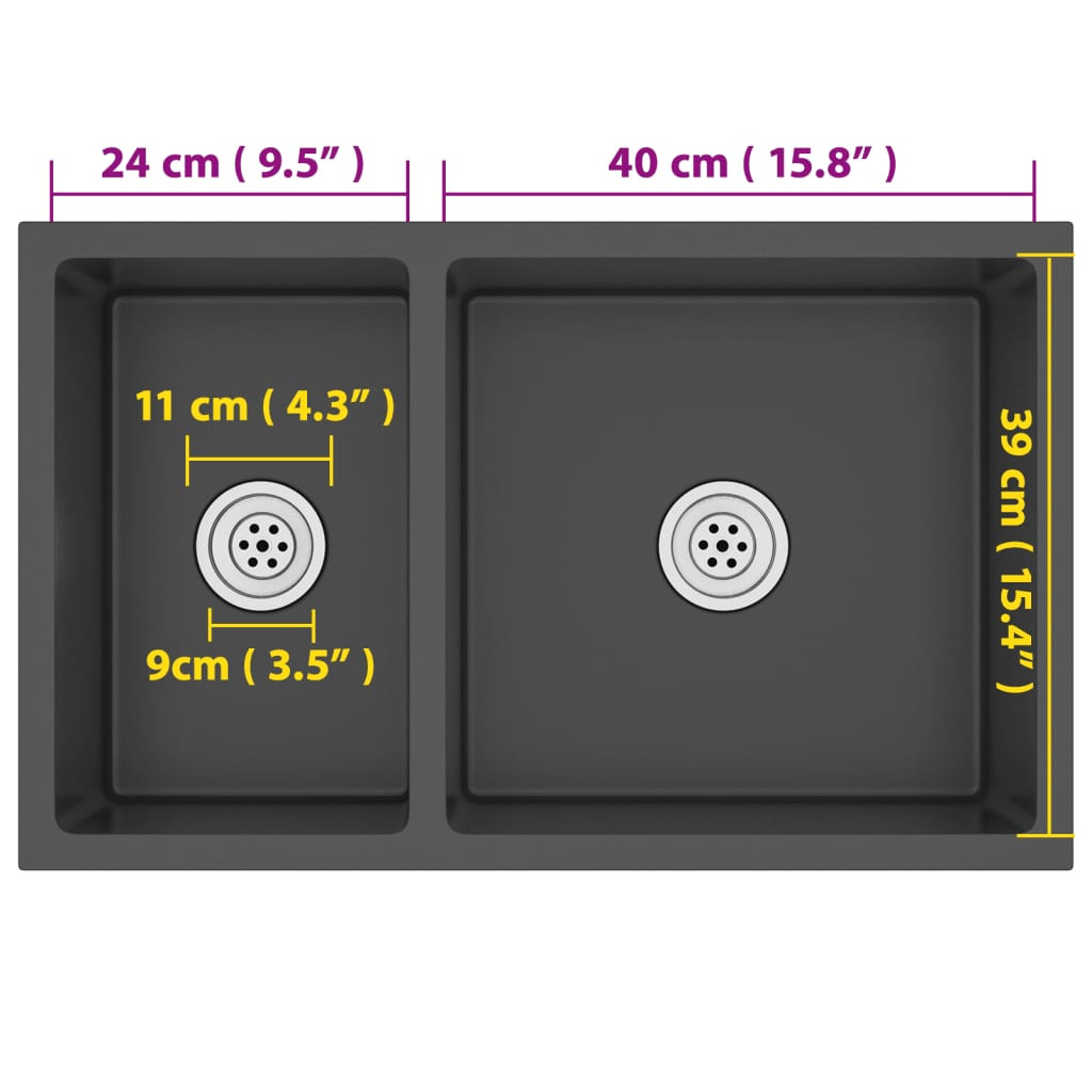 Ez a konyhai mosogató időtlen kiegészítője lesz meglévő konyhai berendezésének. Extra mély medencékkel és elegáns dizájnnal rendelkezik. A mosogató rozsdamentes acélból készült, így karc- és ütésálló, illetve könnyen tisztítható. Egy szűrő szettet is mellékelünk a maradékok könnyű eltávolításához. A lefolyónyílás átmérője 90 mm. Ez a konyhai mosogató felső és alsó beépítésre is alkalmas. A gyermekeket felügyelni kell, hogy ne játsszanak a készülékkel. Tartsa távol a gyerekeket az összeszerelési területtől. Figyelem: Használat előtt figyelmesen olvassa el az utasításokat, és őrizze meg további hivatkozás céljából.