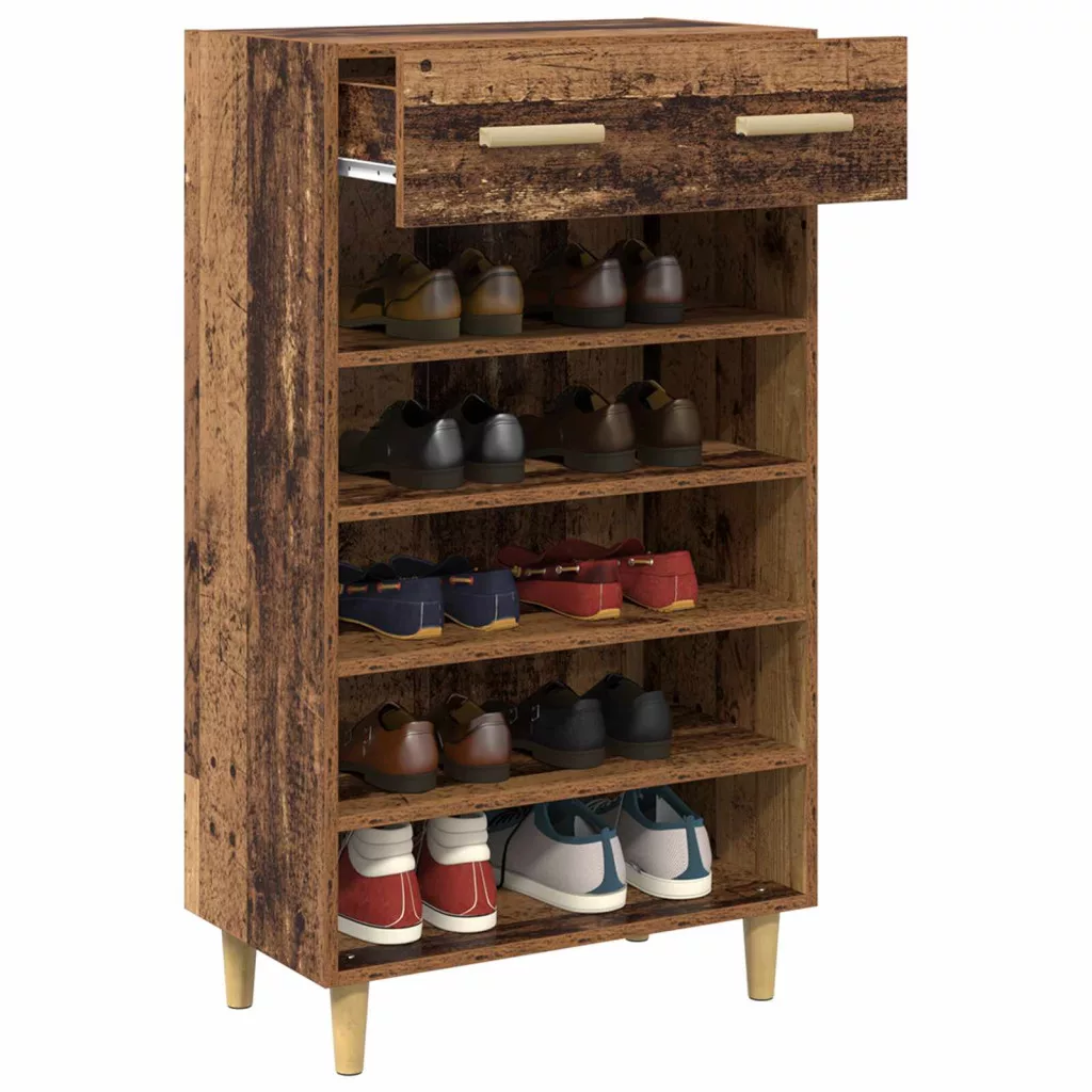 Cipőszekrény fiókkal polcokkal Öreg fa 60 x 35 x 105 cm Faanyag