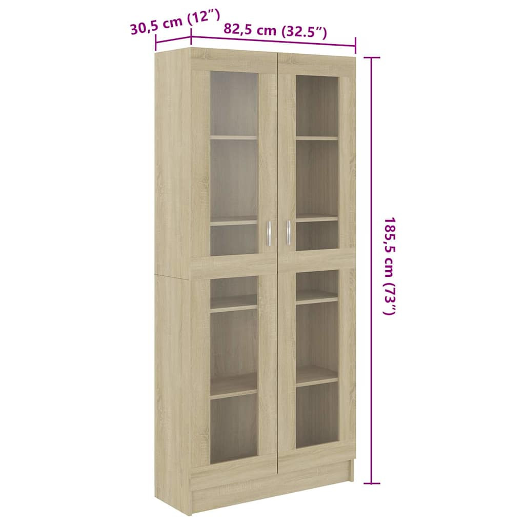 sonoma tölgy színű szerelt fa vitrinszekrény 82,5x30,5x185,5 cm