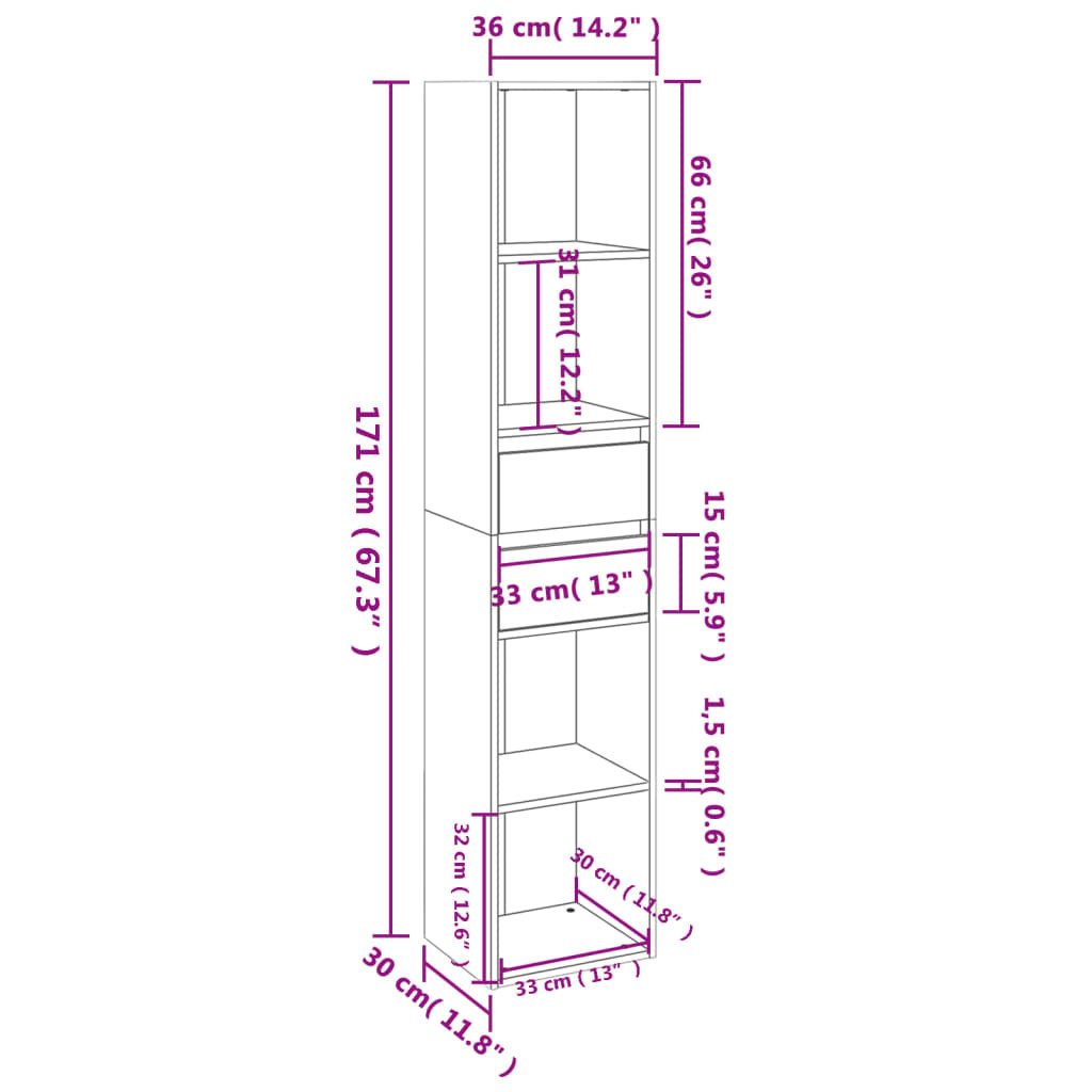 sonoma tölgy színű szerelt fa könyvszekrény 36 x 30 x 171 cm
