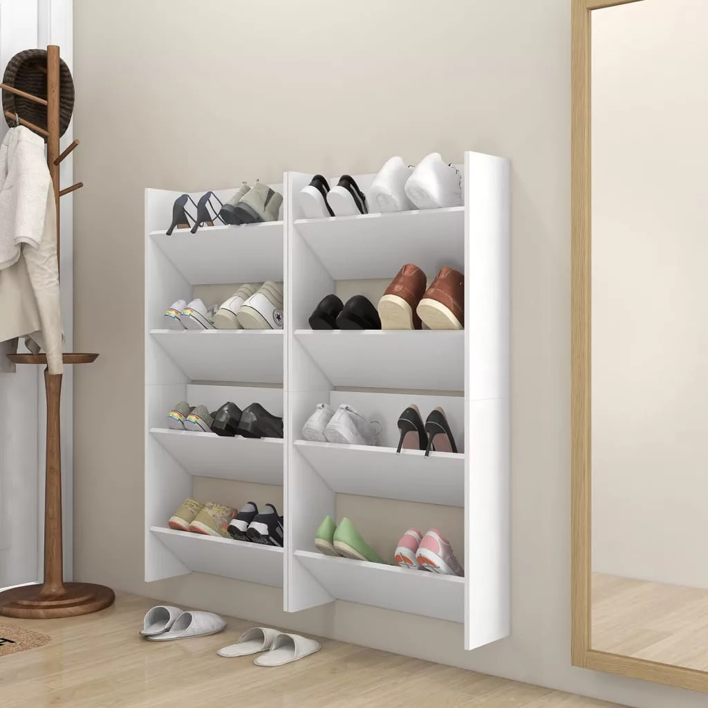 4 db fehér szerelt fa fali cipősszekrény 60 x 18 x 60 cm