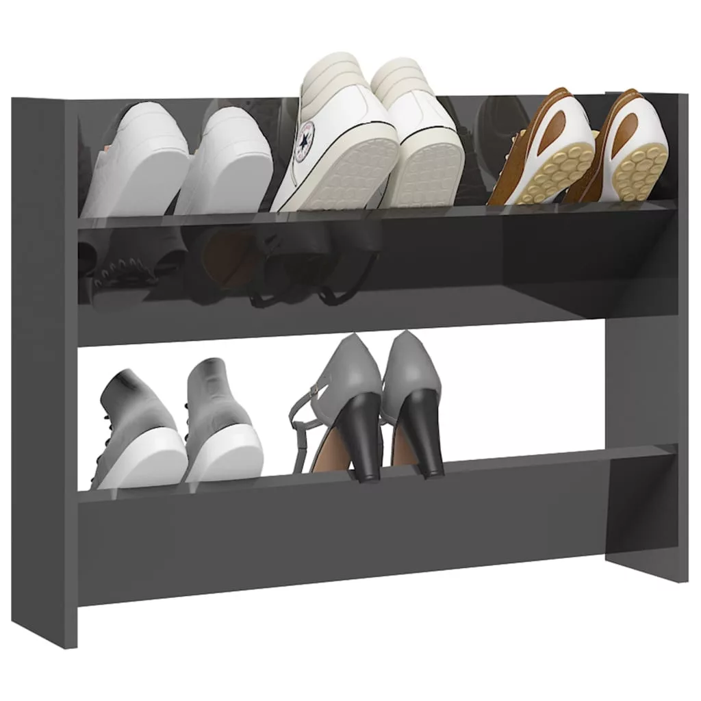 magasfényű szürke szerelt fa fali cipősszekrény 80 x 18 x 60 cm