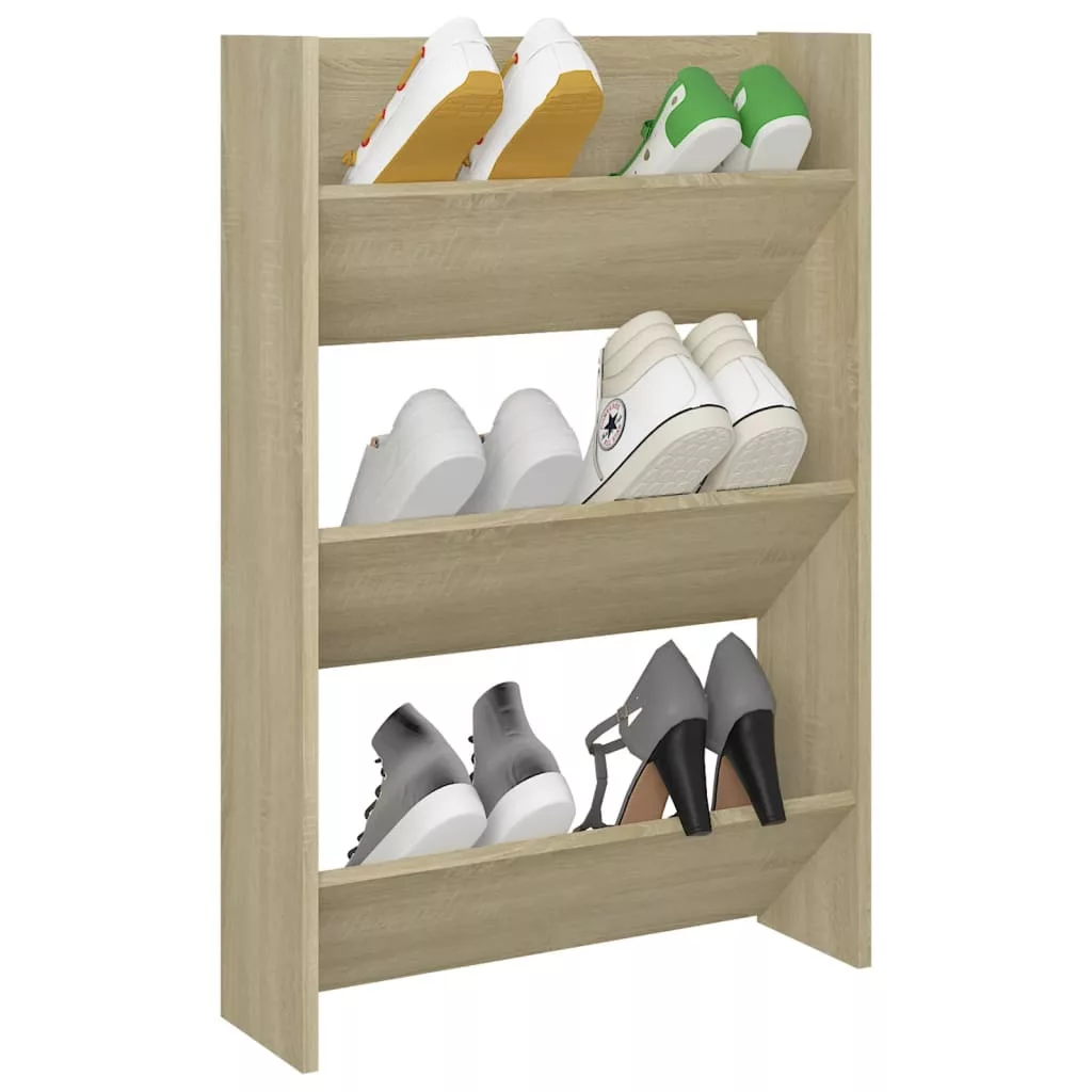 sonoma-tölgyszínű forgácslap fali cipősszekrény 60 x 18 x 90 cm