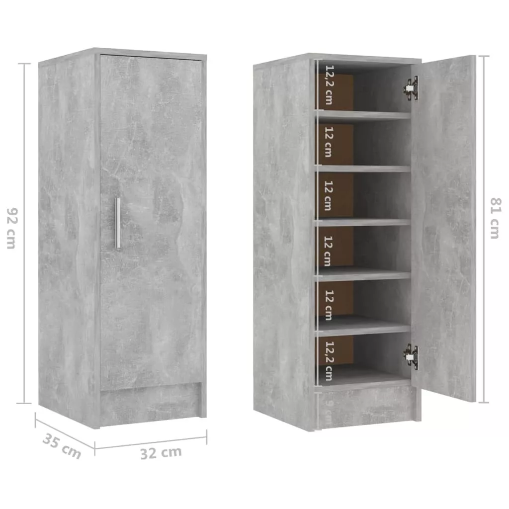betonszürke szerelt fa cipősszekrény 32 x 35 x 92 cm
