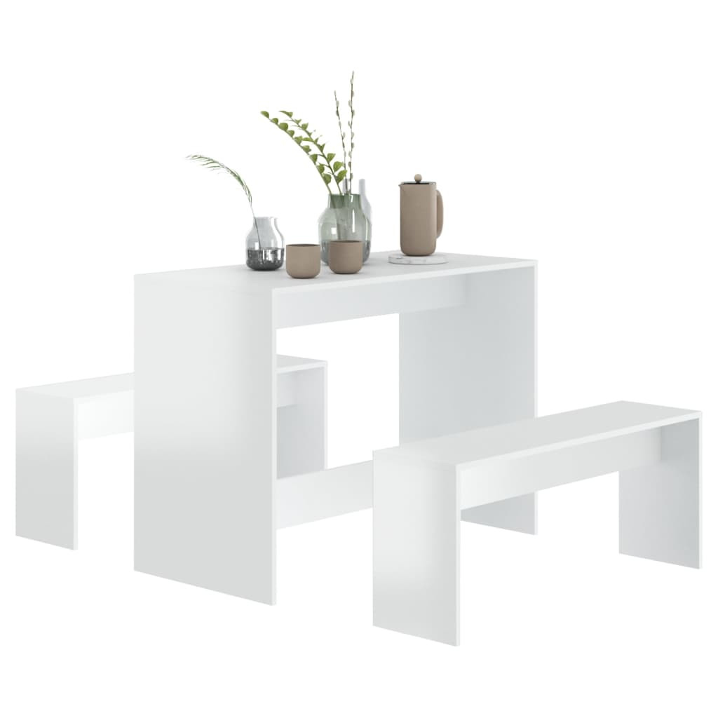 3 részes magasfényű fehér szerelt fa étkezőgarnitúra