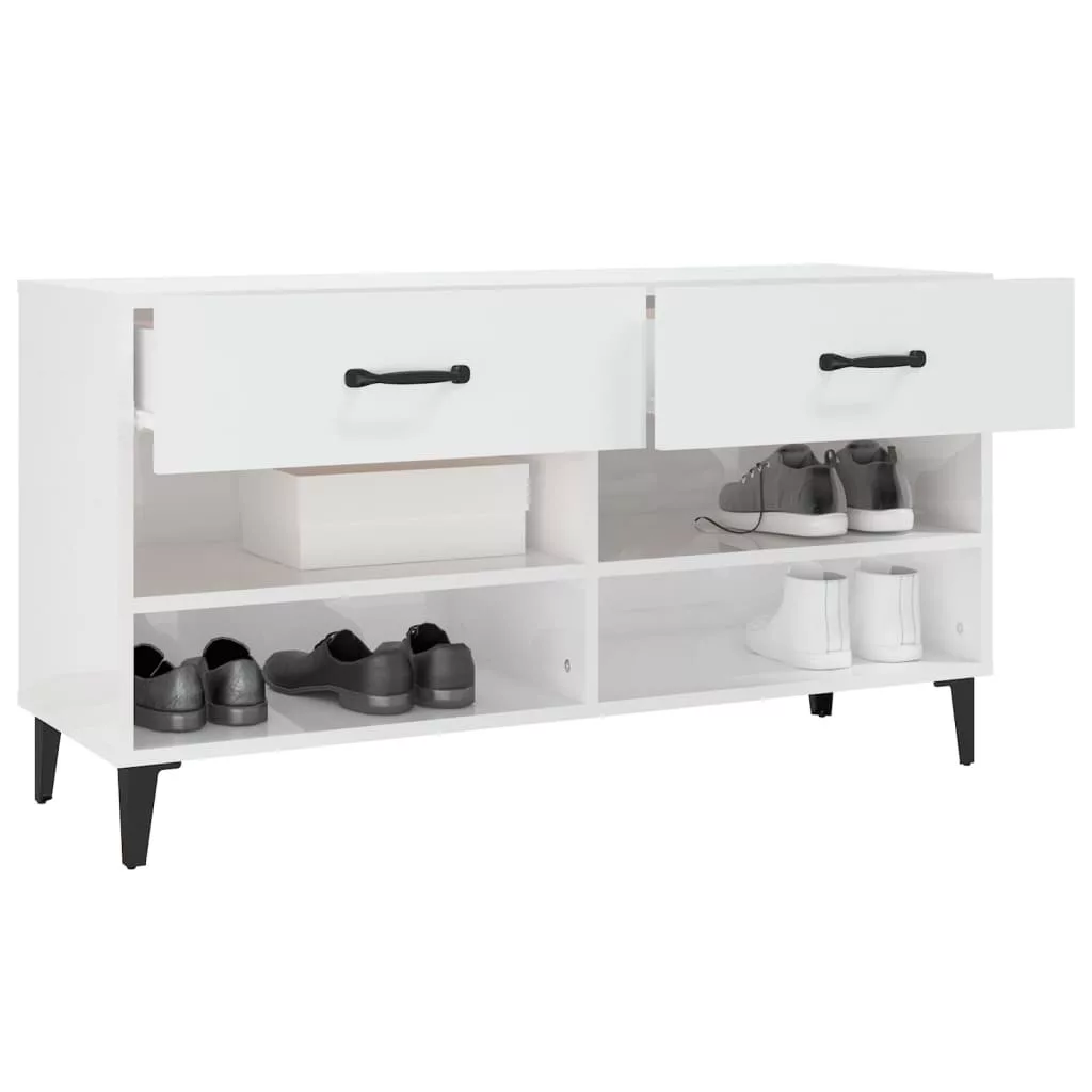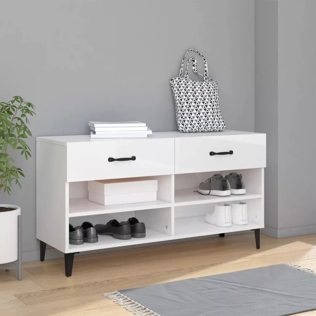 magasfényű fehér szerelt fa cipőszekrény 102x35x55 cm