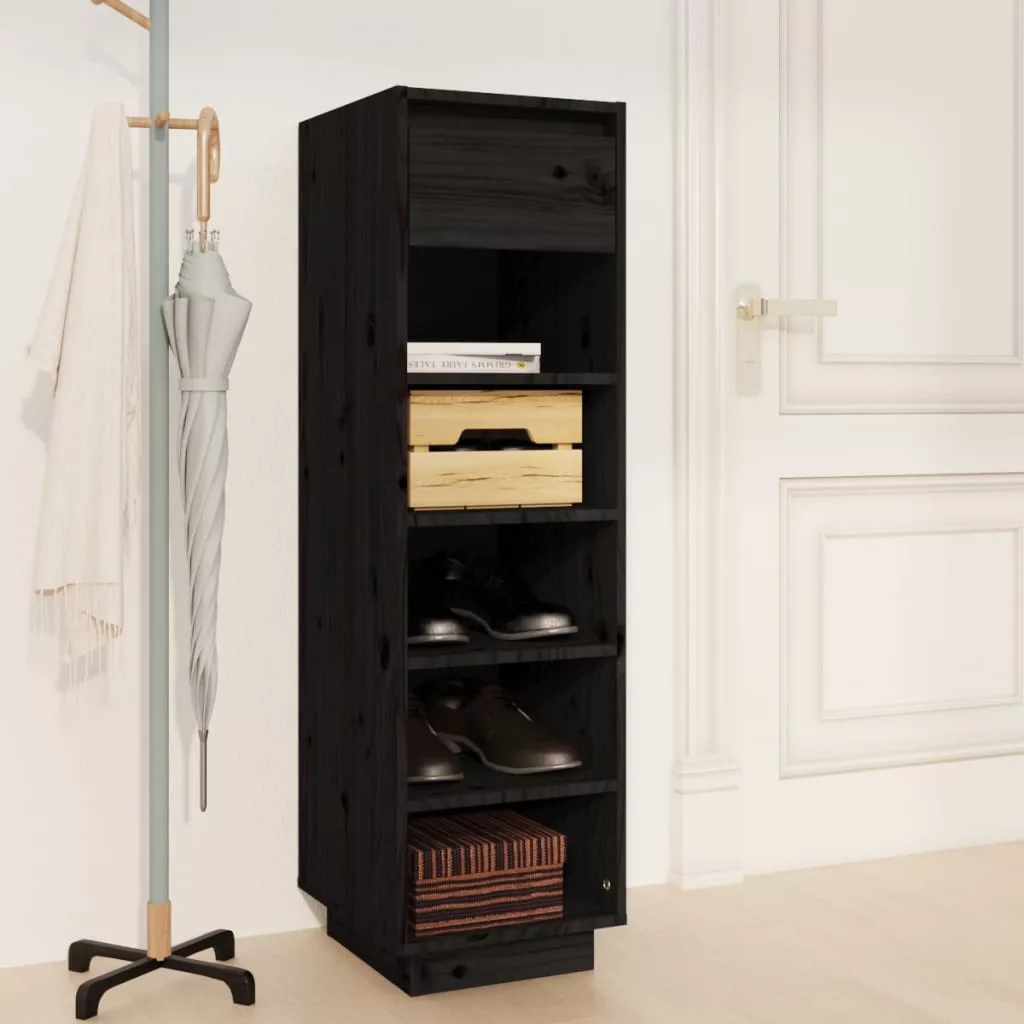 fekete tömör fenyőfa cipőszekrény 34 x 30 x 105 cm