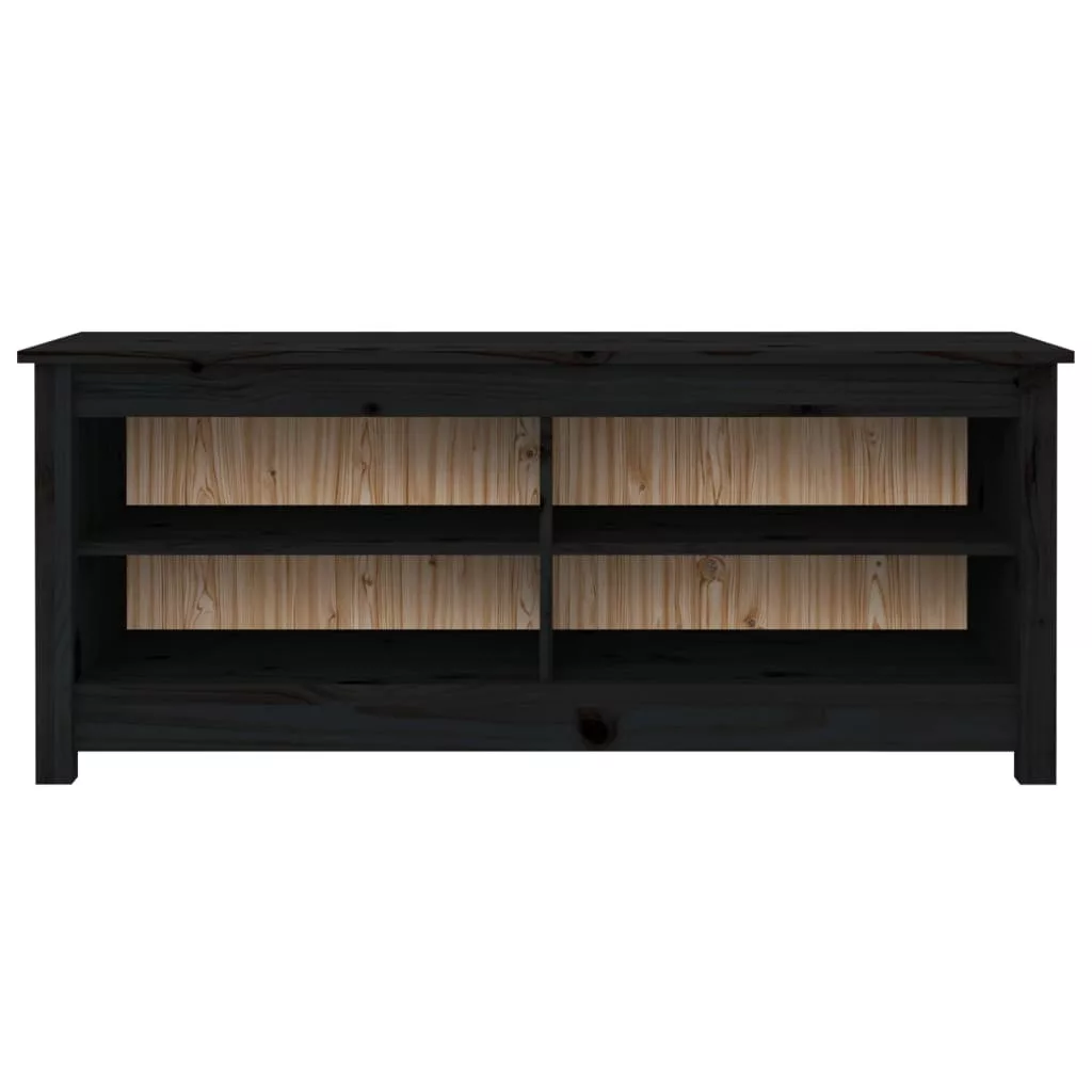 fekete tömör fenyőfa cipőtároló pad 110 x 38 x 45,5 cm