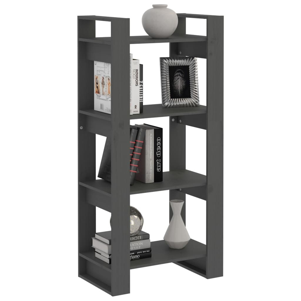 szürke tömör fa könyvszekrény/térelválasztó 60 x 35 x 125 cm