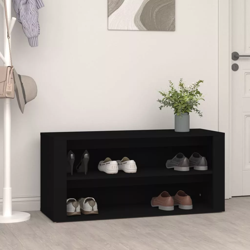 fekete szerelt fa cipőtartó 100x35x45 cm