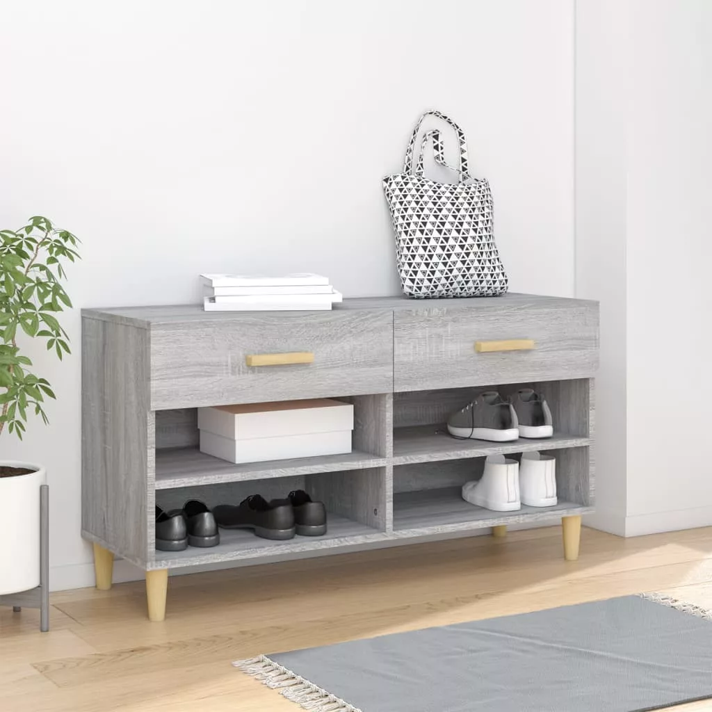 szürke sonoma színű szerelt fa cipőszekrény 102 x 35 x 55 cm