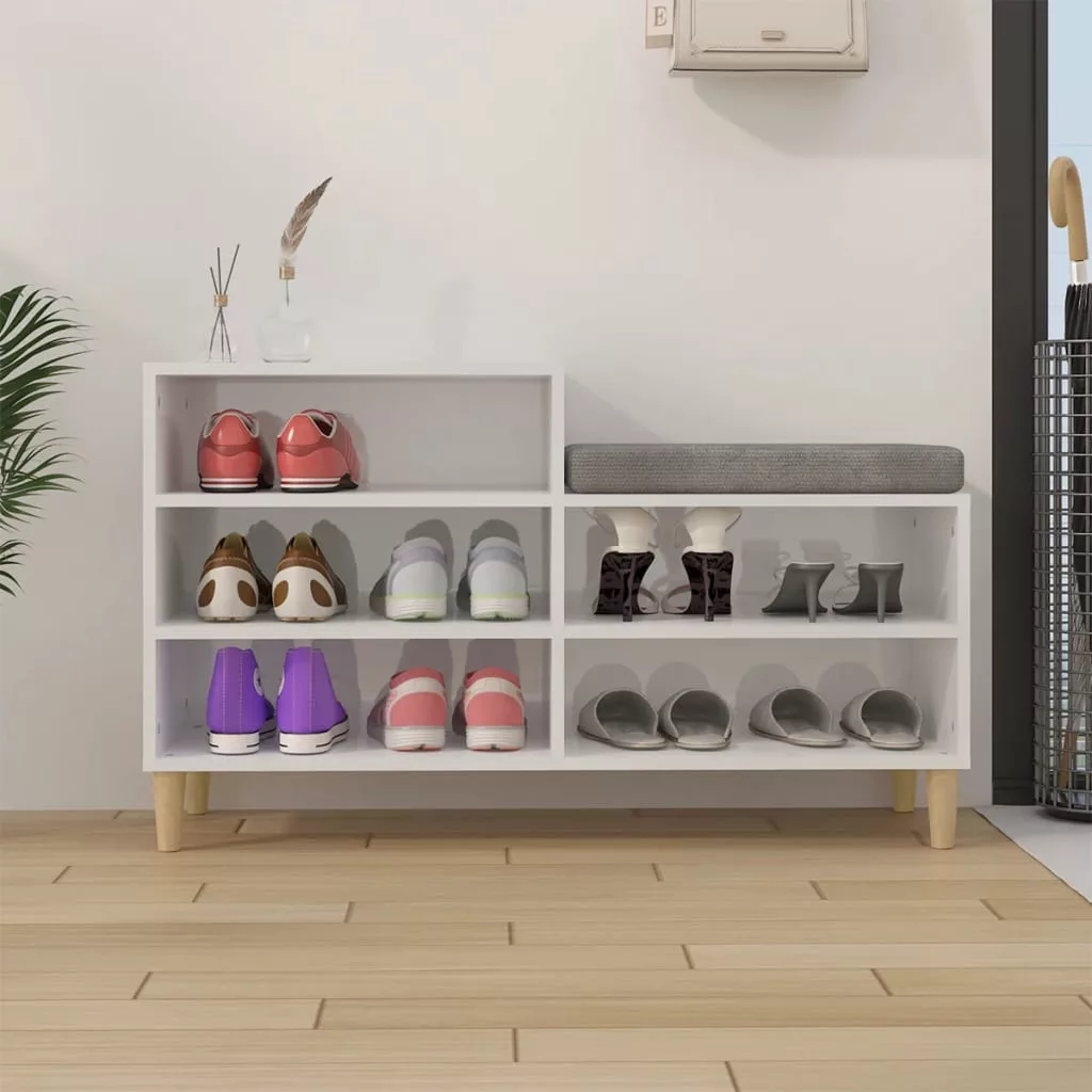 magasfényű fehér szerelt fa cipősszekrény 102x36x60 cm