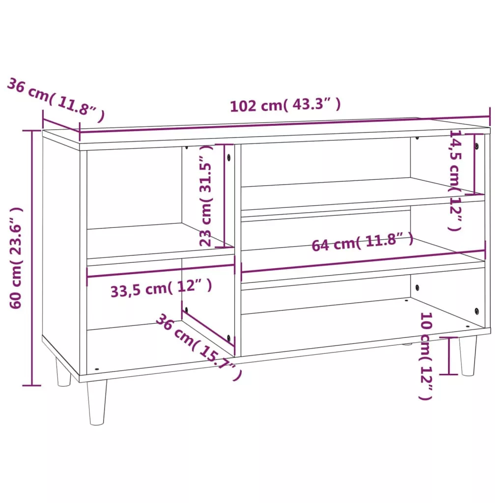 szürke sonoma színű szerelt fa cipősszekrény 102x36x60 cm