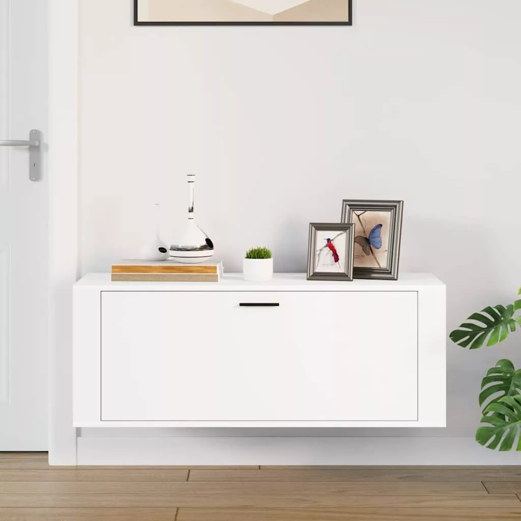 fehér szerelt fa fali cipőszekrény 100 x 35 x 38 cm