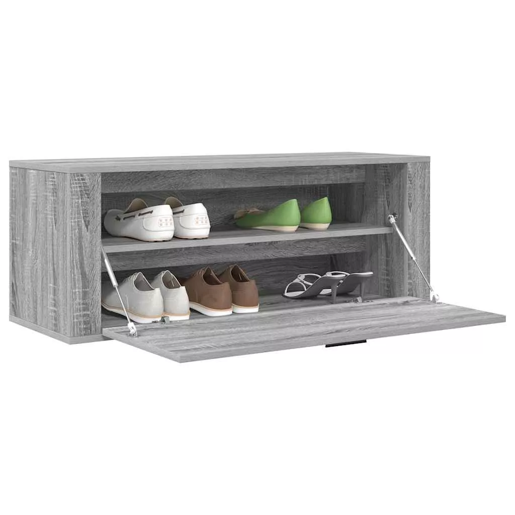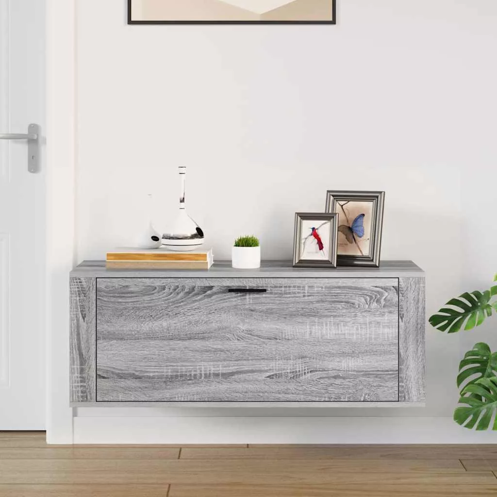 szürke sonoma színű szerelt fa fali cipősszekrény 100x35x38 cm