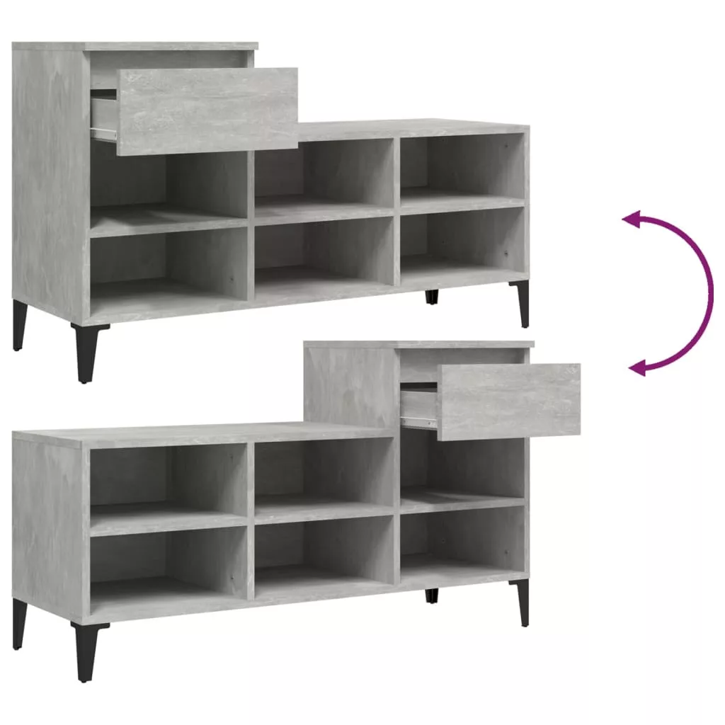 betonszürke szerelt fa cipőszekrény 102x36x60 cm