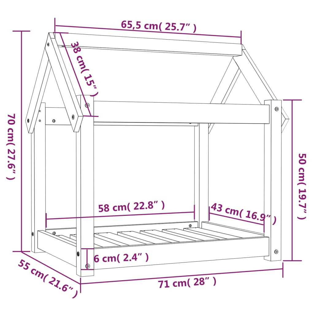 mézbarna tömör fenyőfa kutyaágy 71x55x70 cm