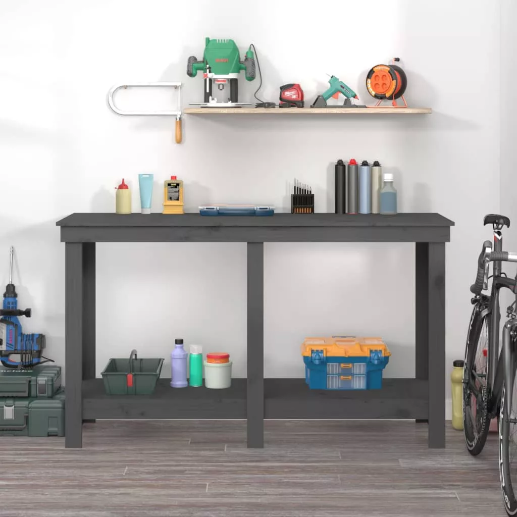 szürke tömör fenyőfa munkapad 140 x 50 x 80 cm