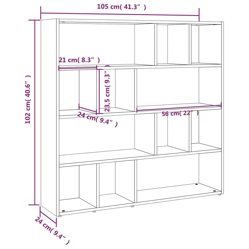 magasfényű fehér térelválasztó könyvszekrény 105 x 24 x 102 cm