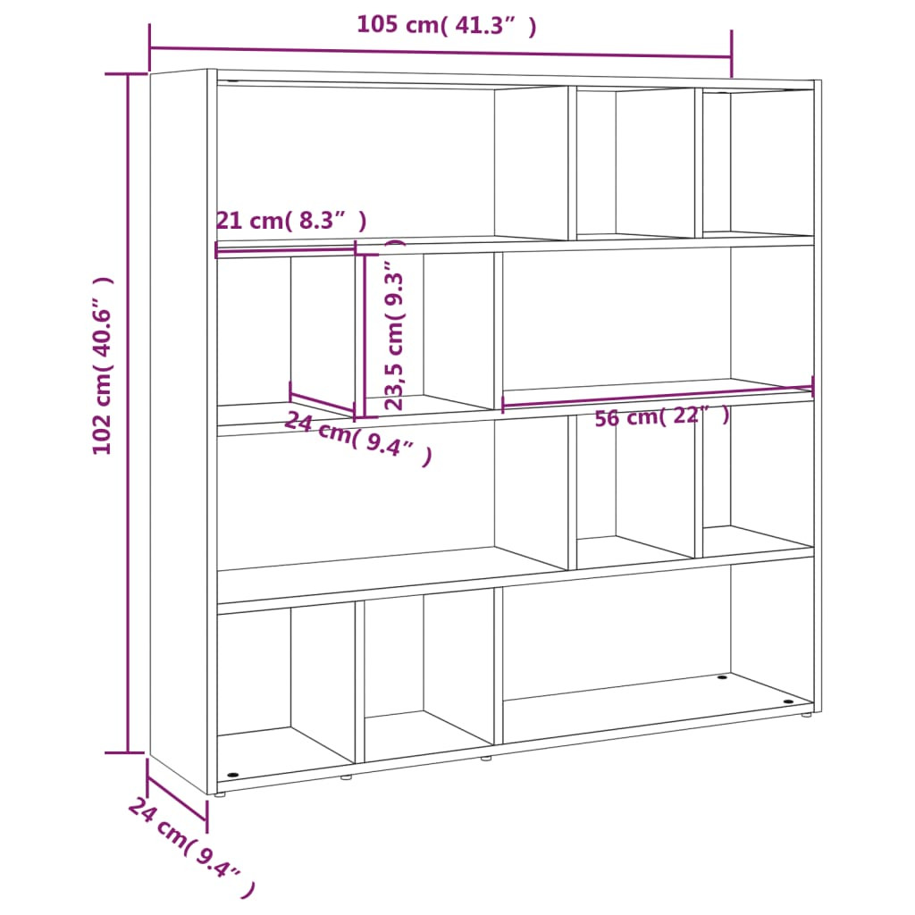 sonoma tölgy színű térelválasztó könyvszekrény 105x24x102 cm