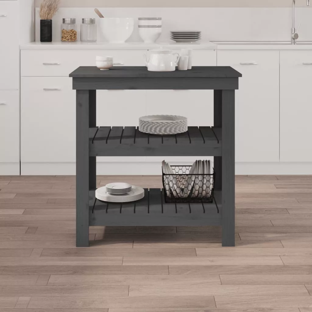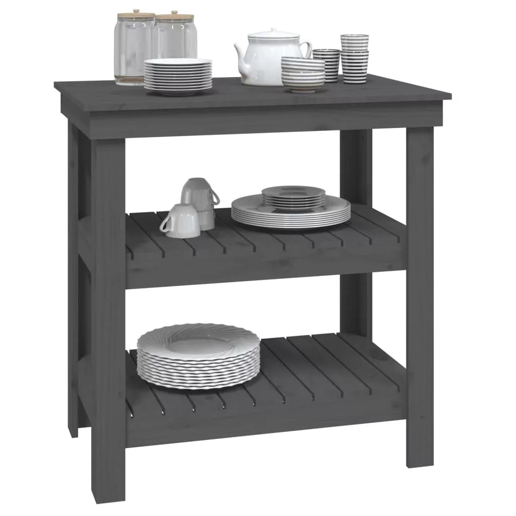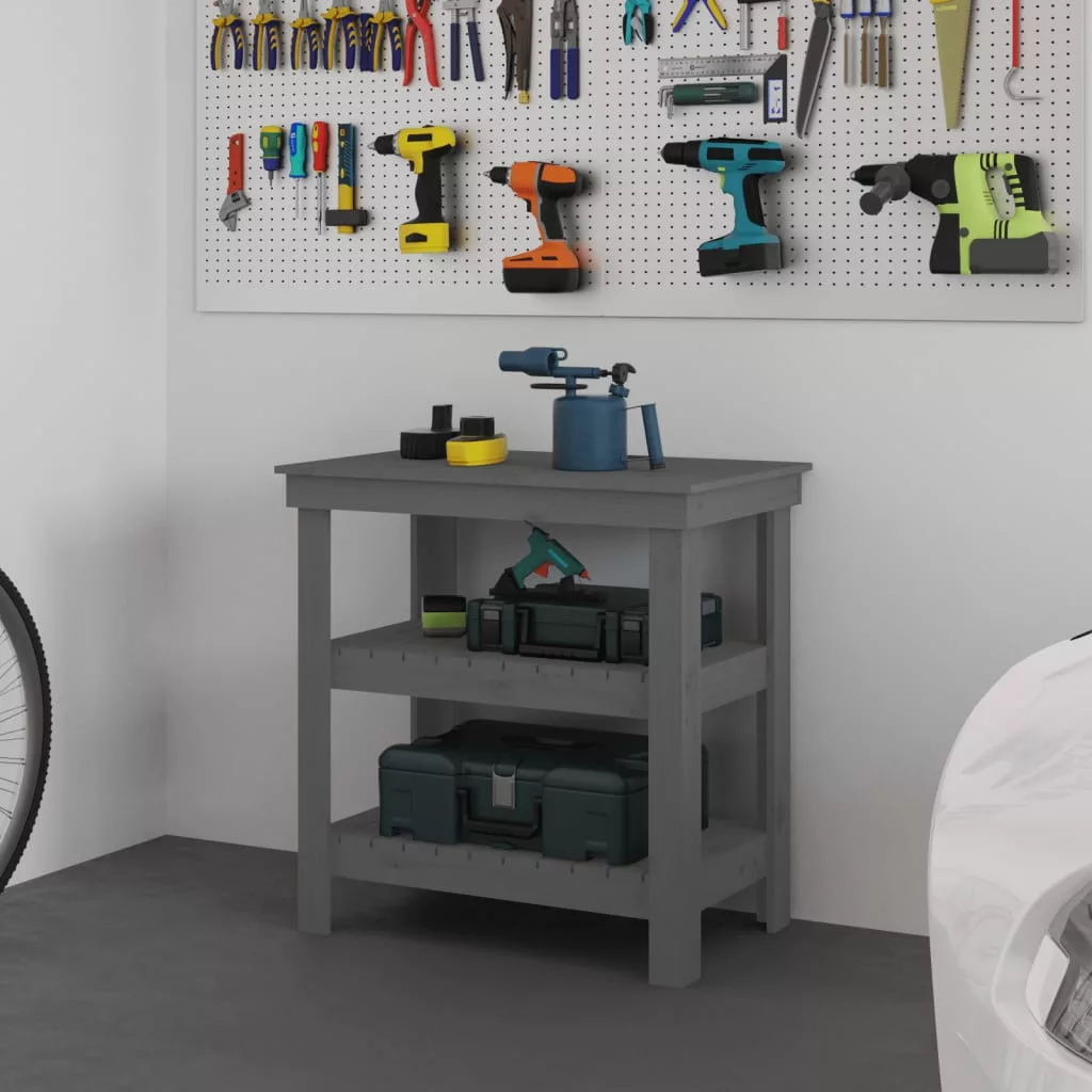 szürke tömör fenyőfa munkapad 78,5x50x80 cm
