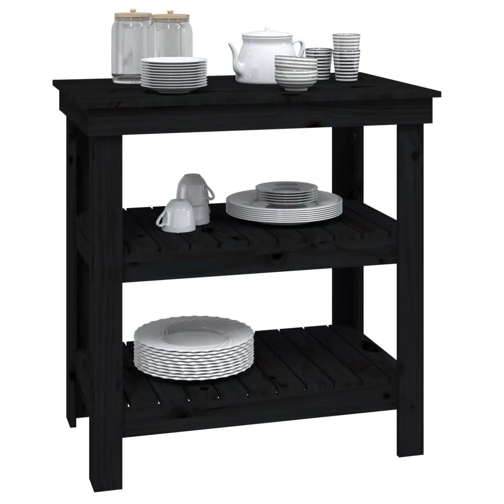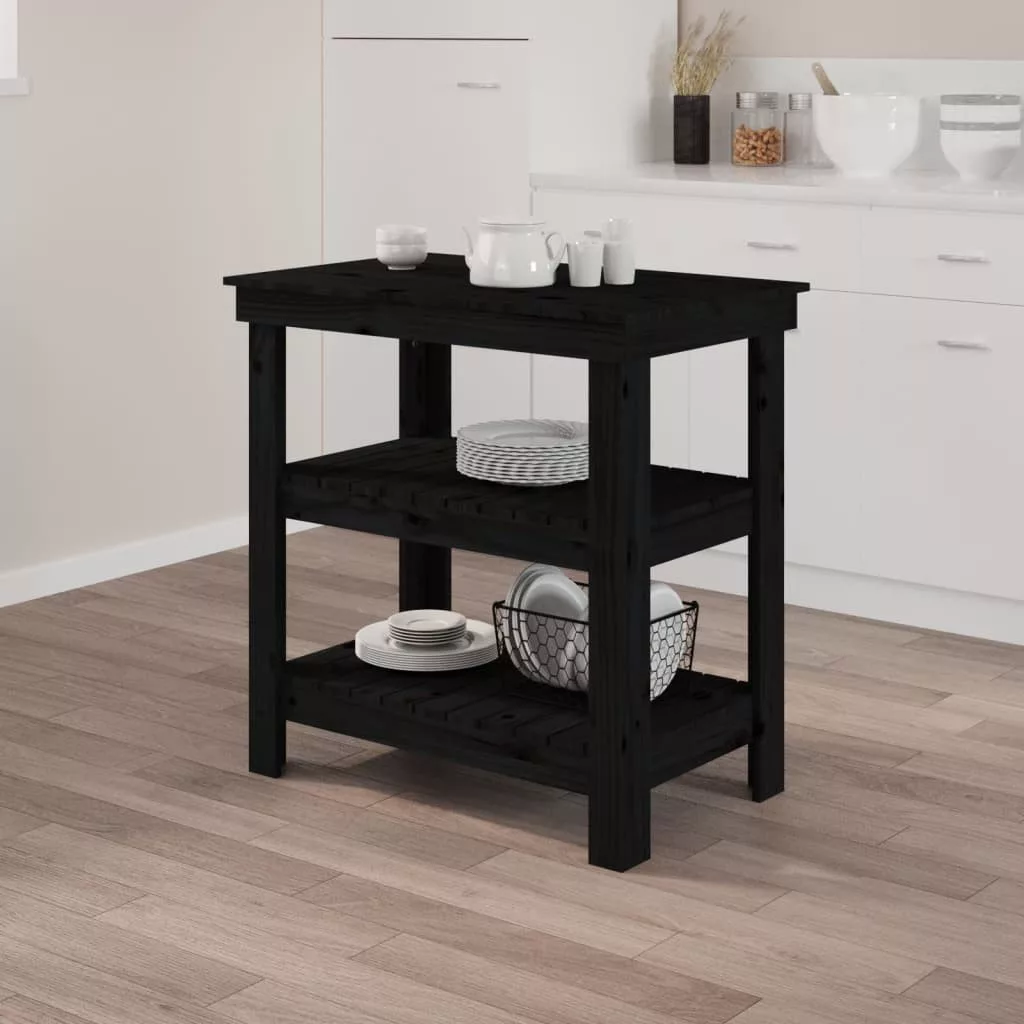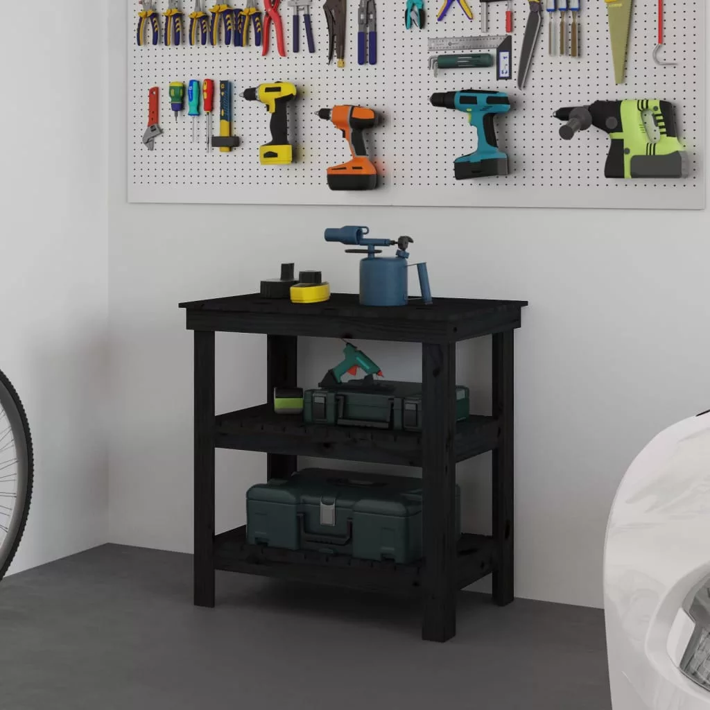 fekete tömör fenyőfa munkapad 78,5x50x80 cm