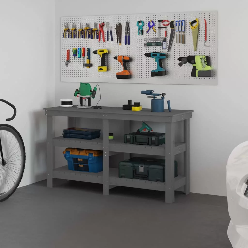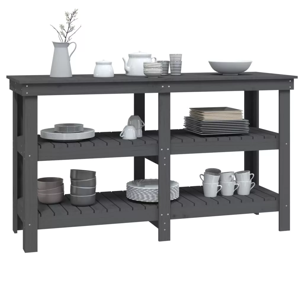 szürke tömör fenyőfa munkapad 142,5 x 50 x 80 cm